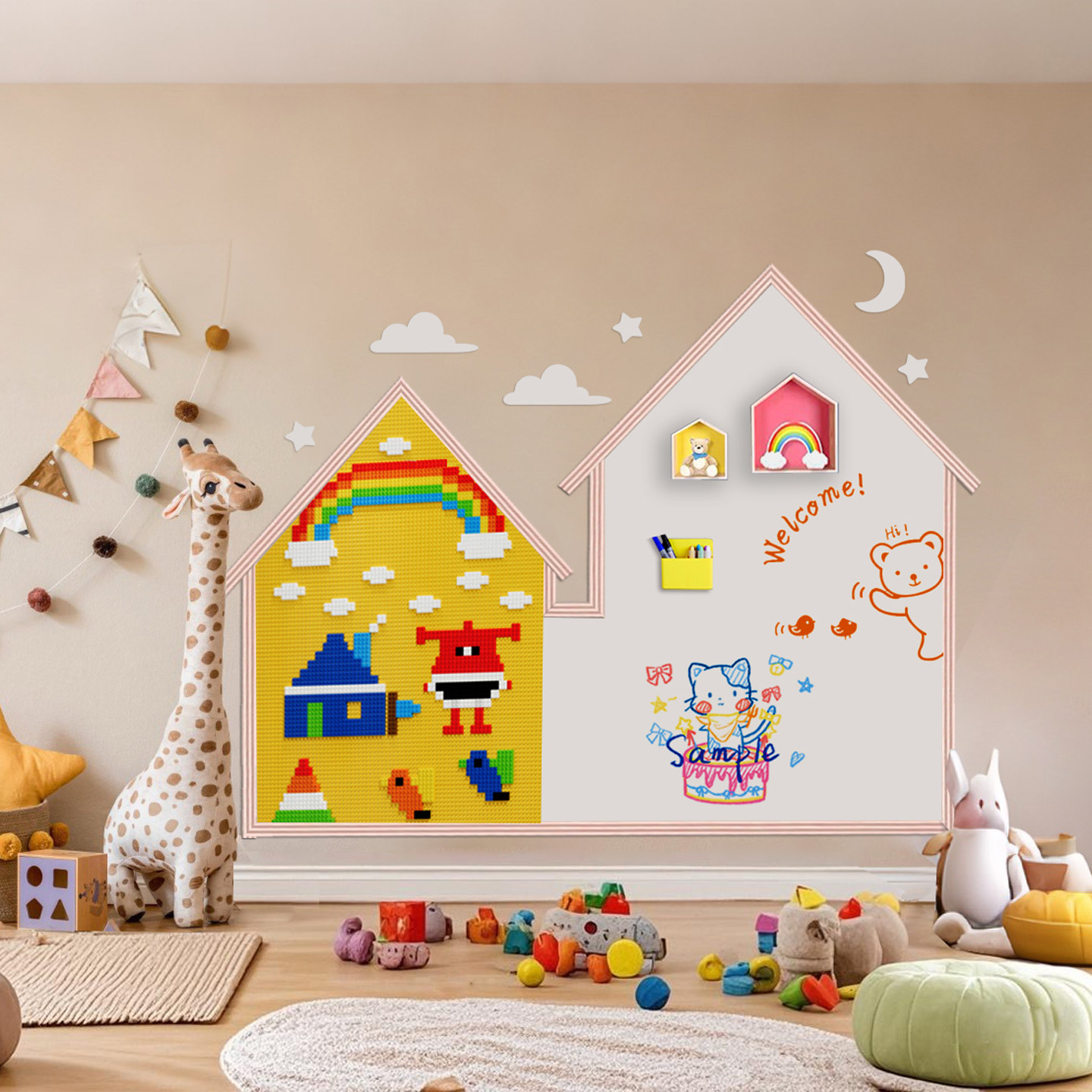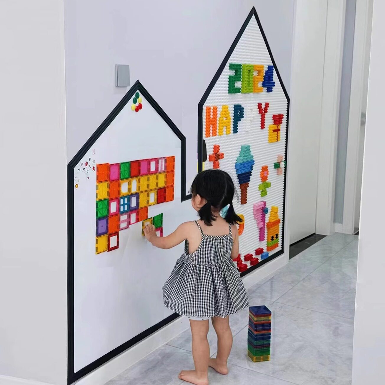 亿小盒防撞条边框白板积木墙二合一儿童孩子宝宝涂鸦双层磁性白板墙贴学校幼儿园家用可擦写白板黑板墙装饰墙