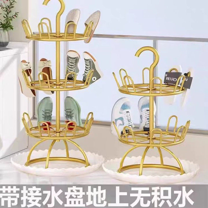 晾鞋架室外阳台家用落地带接水盘晾鞋挂架可旋转沥水晒鞋神器挂钩