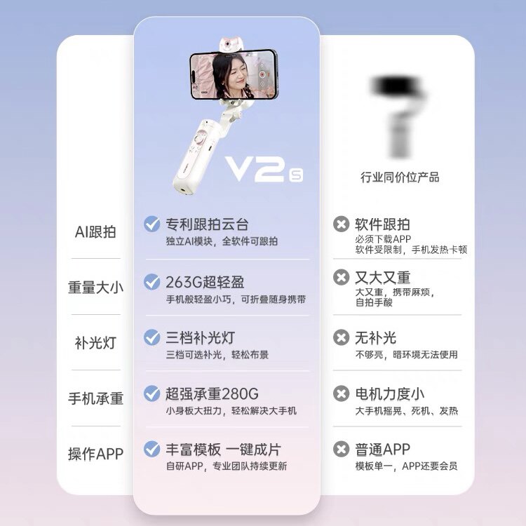浩瀚V2S手机拍摄稳定器三轴防抖手持云台自动人脸追踪跟拍神器