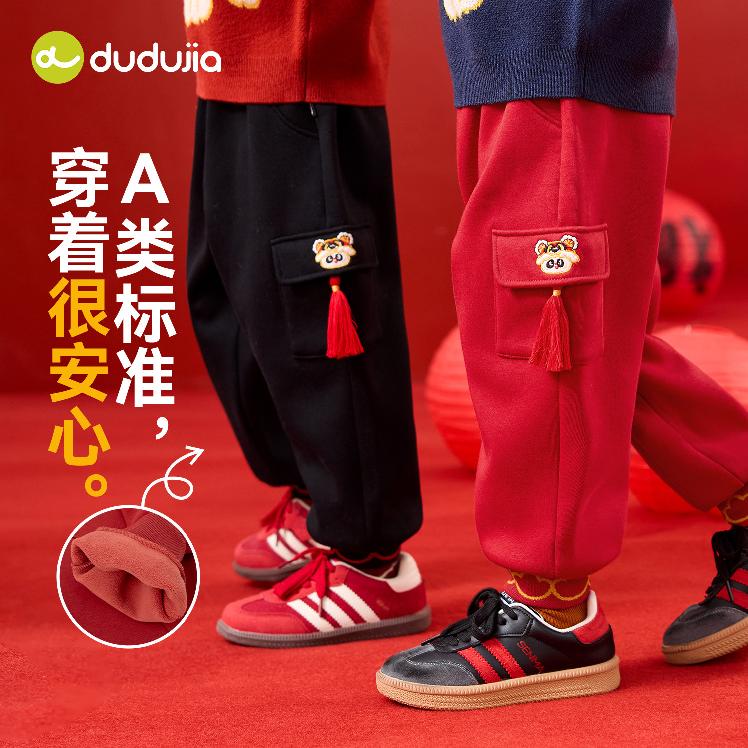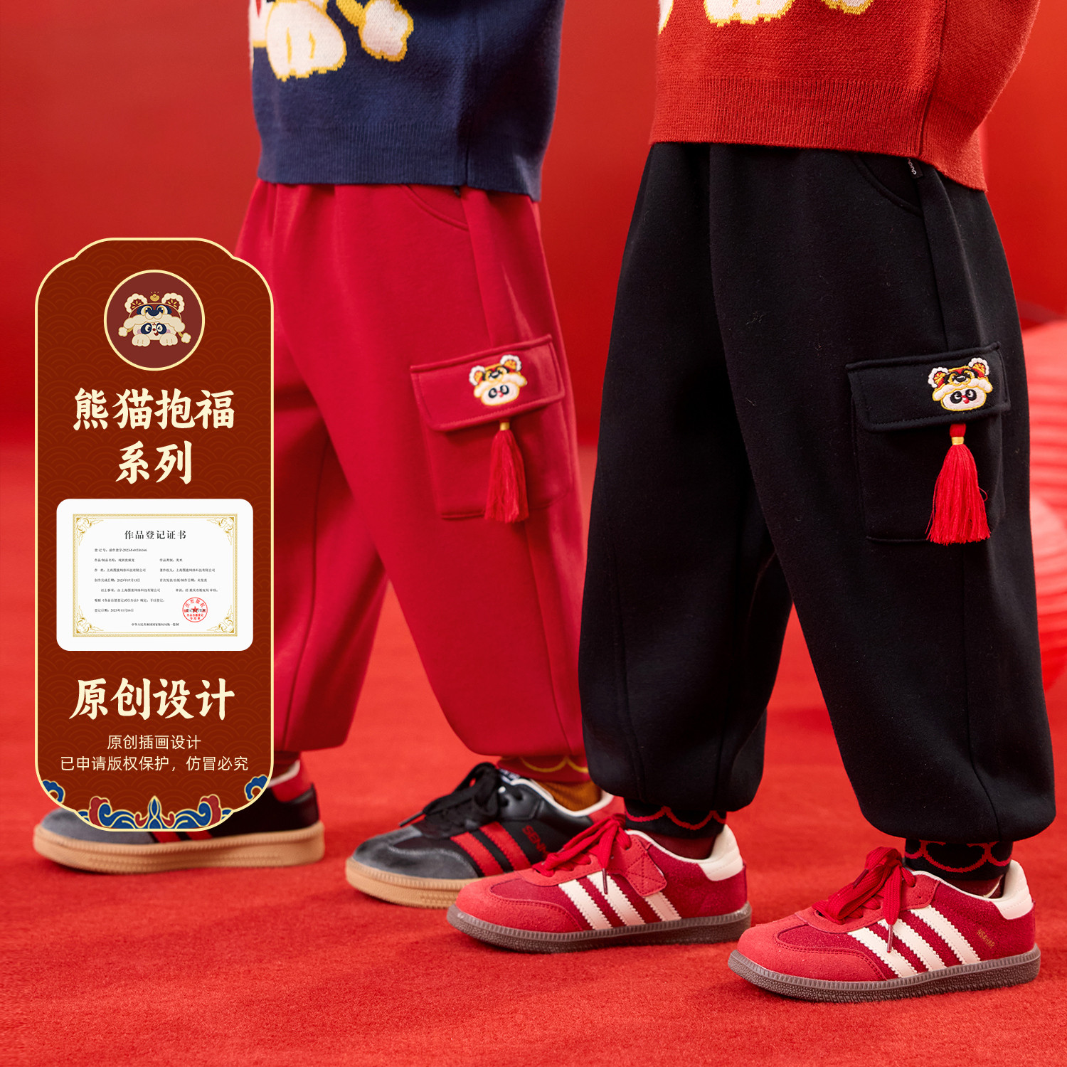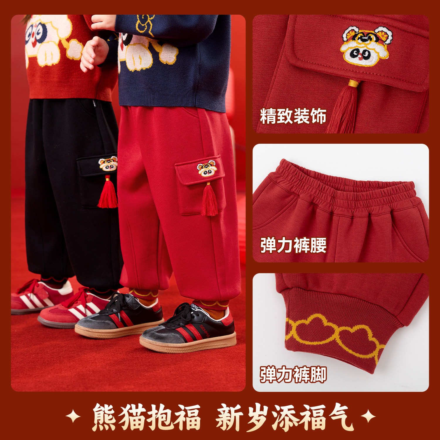 嘟嘟家宝宝唐装裤子加绒儿童拜年服冬季长裤男童周岁礼服喜庆年装