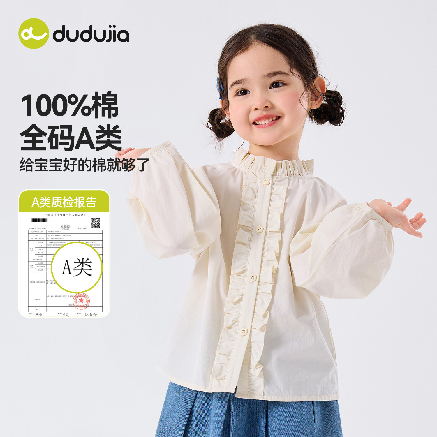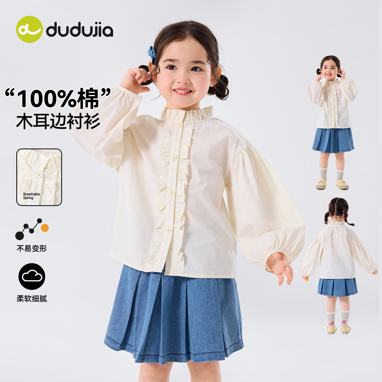 【100%棉】嘟嘟家女童衬衫女孩春季纯棉上衣女宝洋气春装儿童衣服