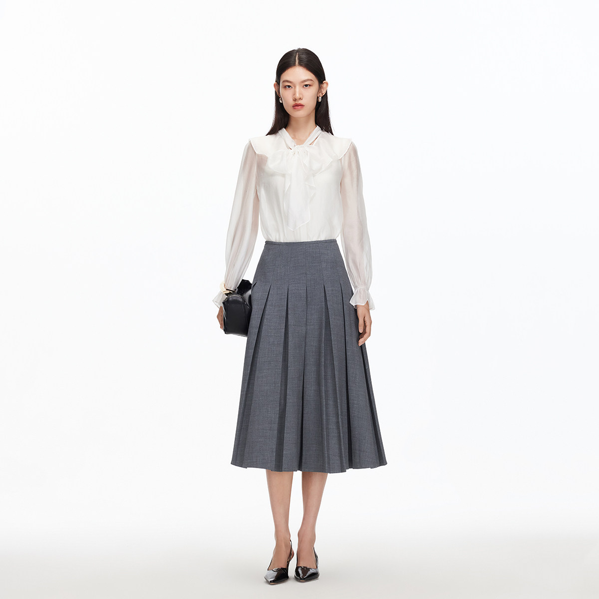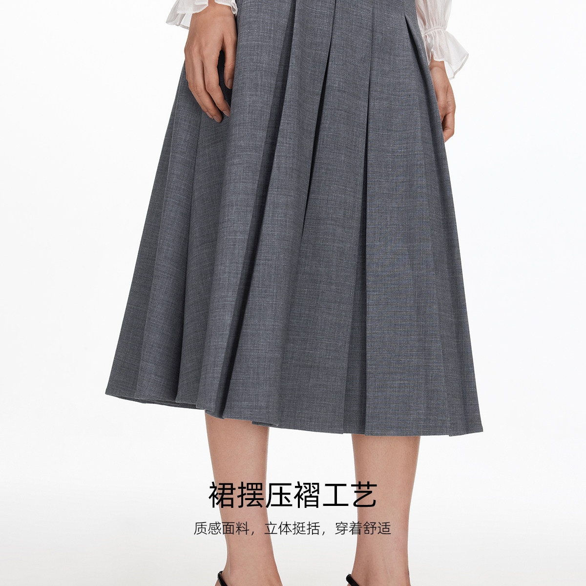 Vero Moda半身裙2025秋季新款纯色A字中长百褶裙百搭325316022