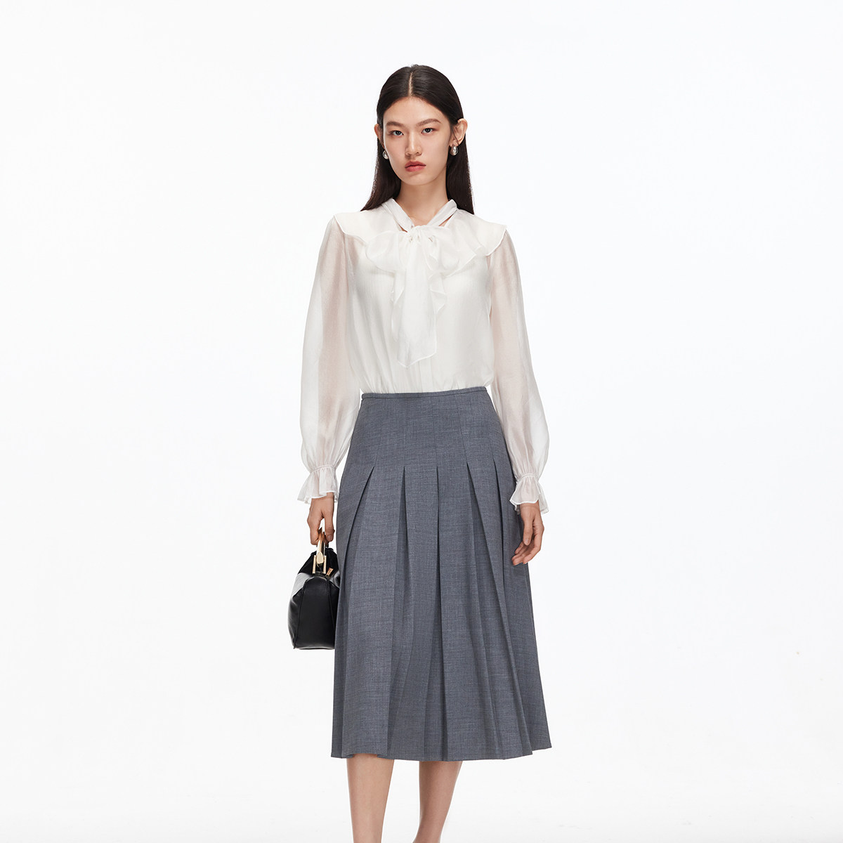 LIMONN |秋冬多颜色经典高腰显腿长A字百褶半身裙长裙
