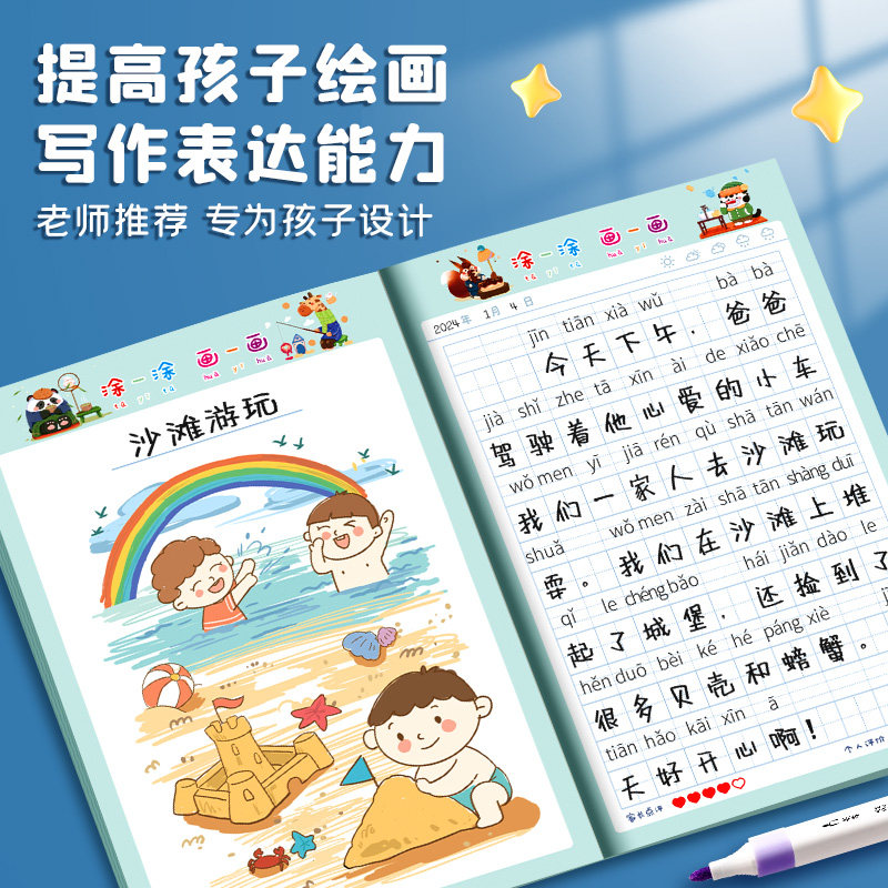 绘画日记本小学生一年级二年级幼儿园儿童看图写话本子拼音田字格周记本男孩画画日记少儿画图写话本女孩a5b5