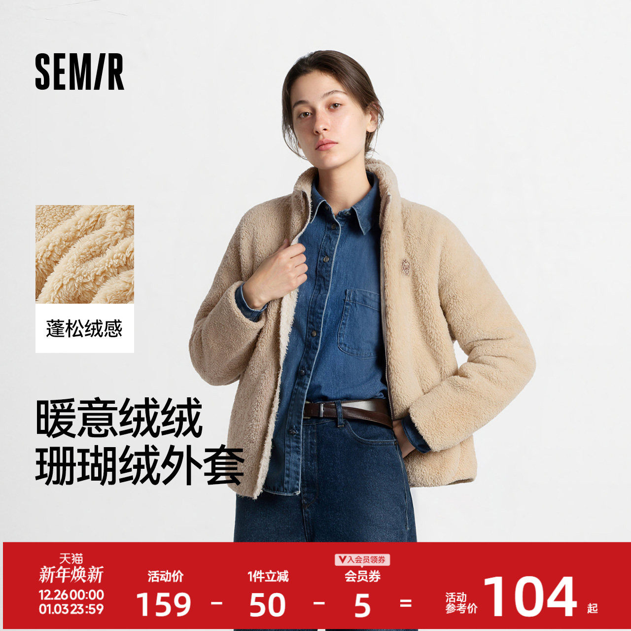 森马外套女冬季珊瑚绒插肩袖宽松立领绣花2025新款温柔风潮流夹克