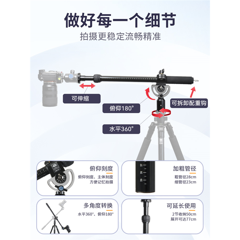 【博主力荐款】SIRUI思锐HA-77 视频小摇臂 单反相机微单短视频创意俯仰拍婚礼节目摄影摄像拍摄铝合金延长杆