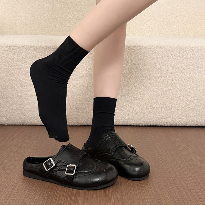 真皮包头穆勒鞋女半拖2025新款一脚蹬软面懒人平底拖鞋女夏外穿