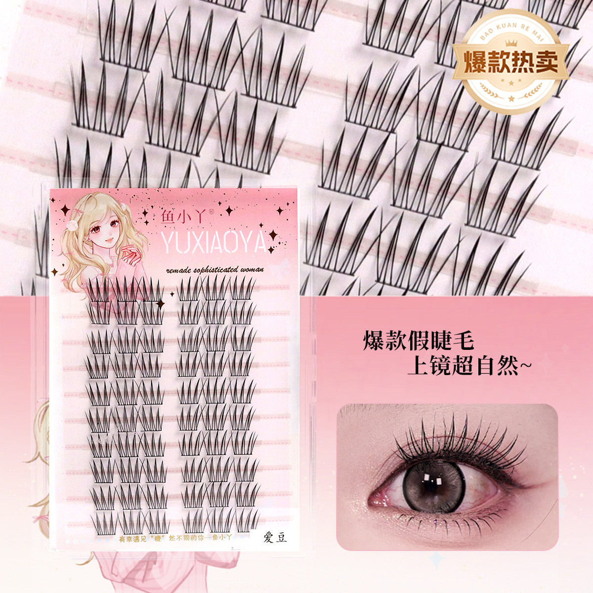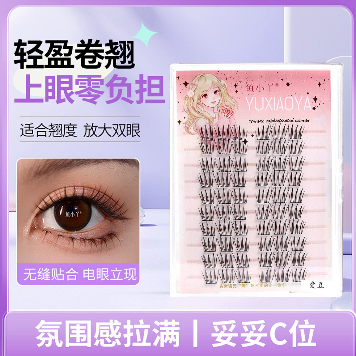 鱼小丫假睫毛懒人女团爱豆假睫毛自然仿真分段式黑细梗单簇眼睫毛