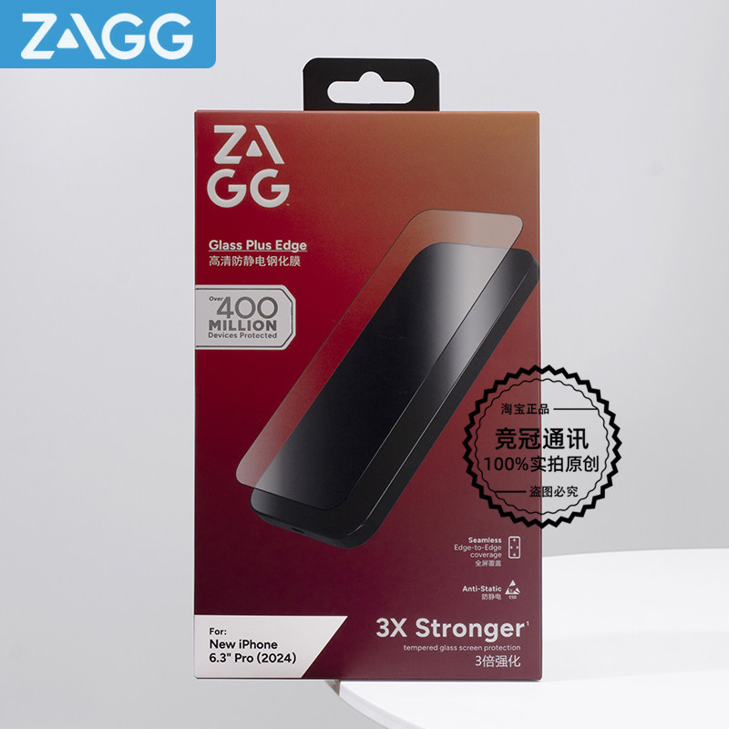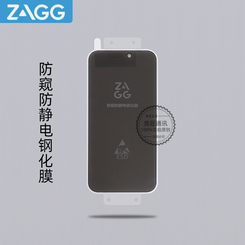 ZAGG 高清全屏钢化膜防爆防静电丝滑防窥防蓝光防尘摔送贴膜神器适用苹果16iPhone 17proMax手机钢化膜15Pro
