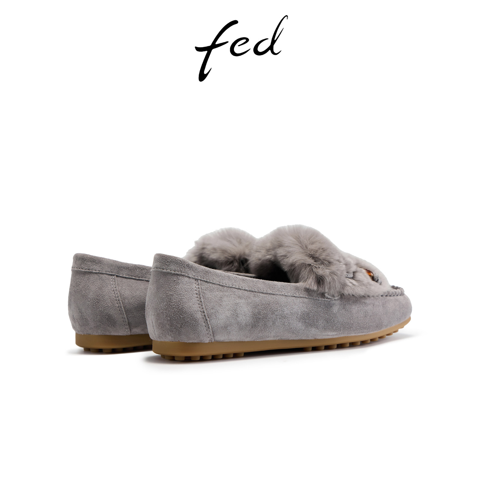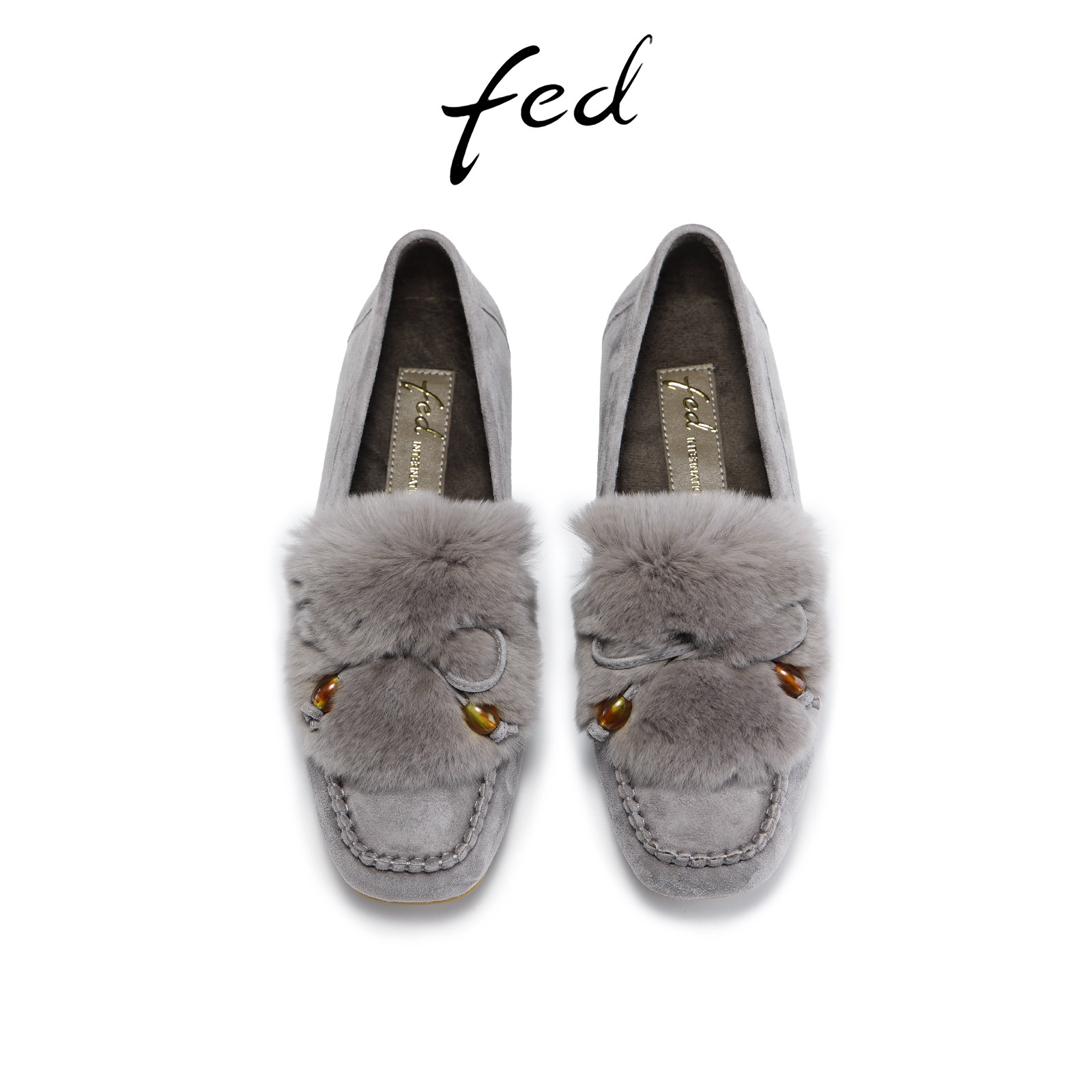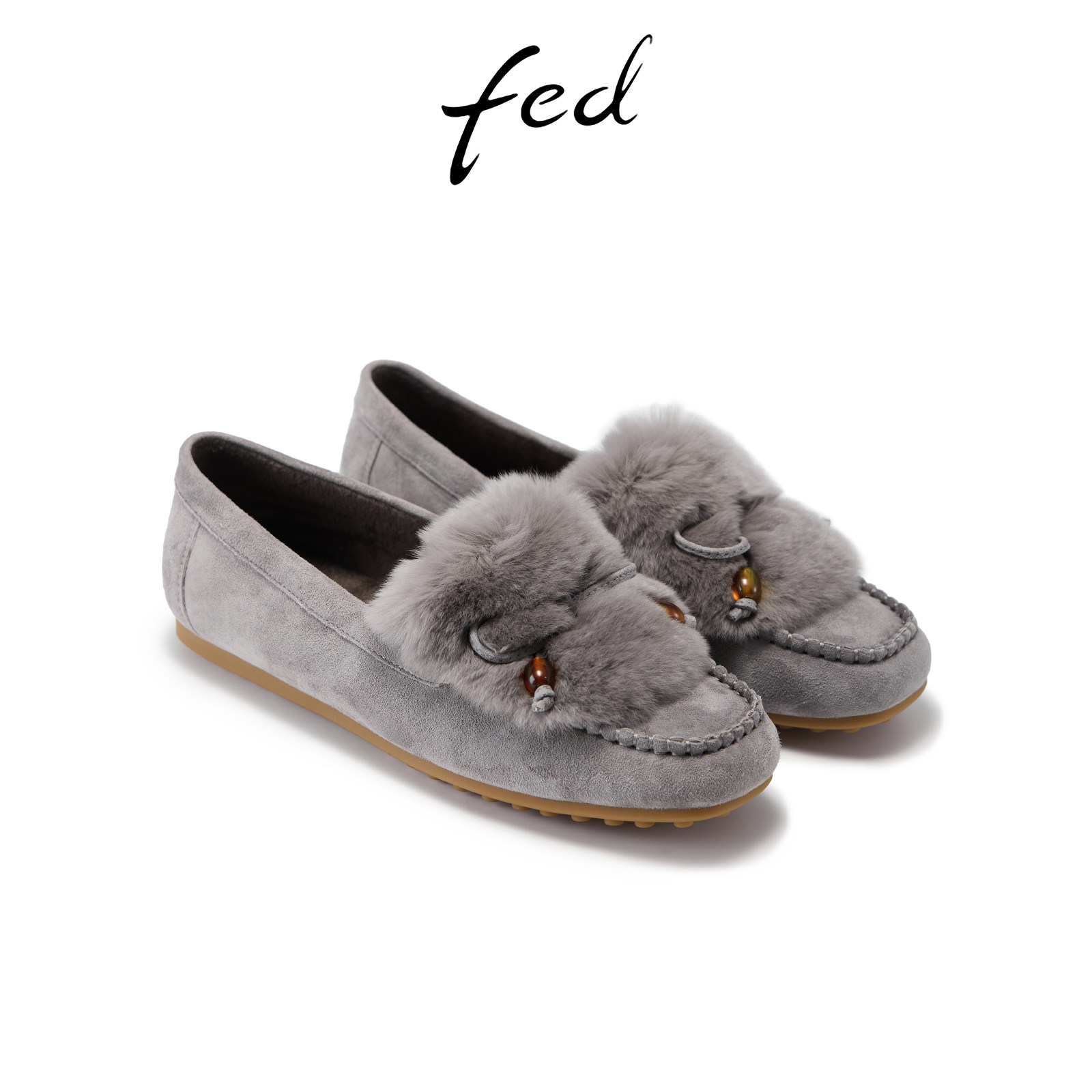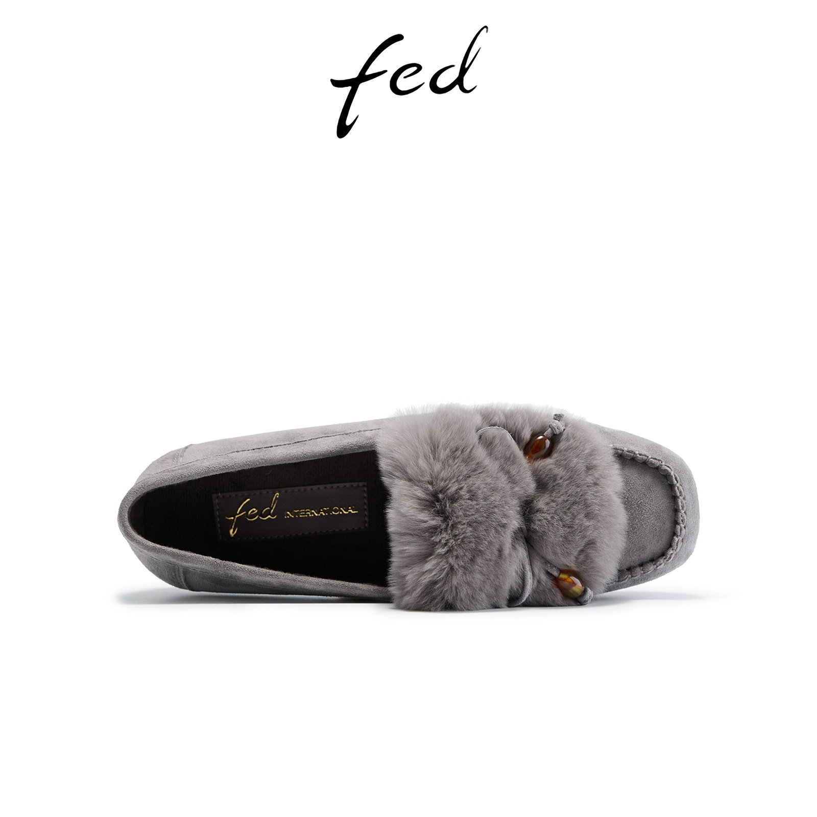 fed毛毛平底鞋冬季新款女鞋一脚蹬单鞋加绒豆豆鞋女款S1022-YA167