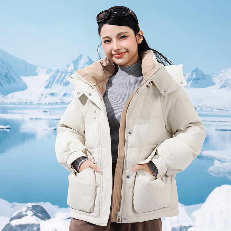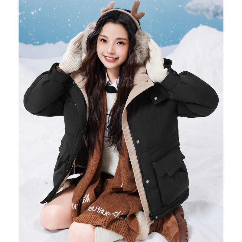 GC真维斯2025冬季新款舒适保暖潮流青春甜美学院风连帽羽绒服显瘦