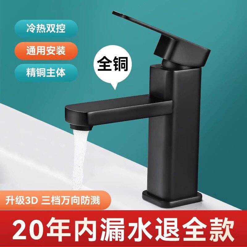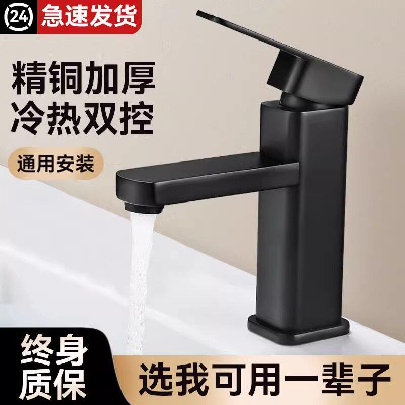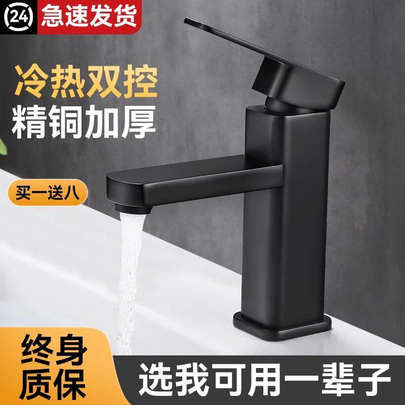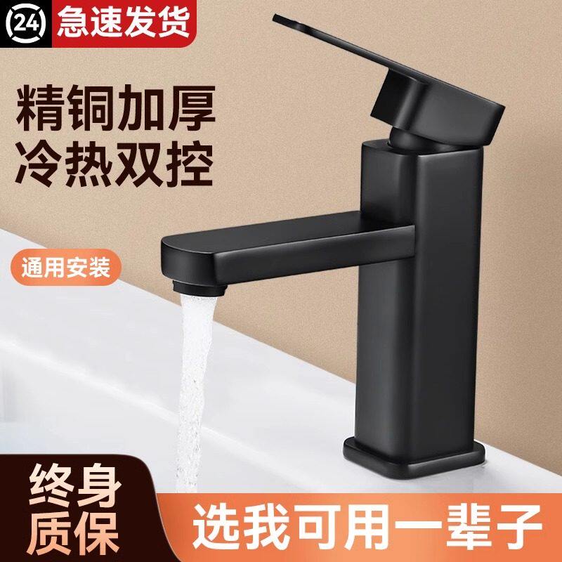 全铜黑色单孔冷热洗手盆水龙头卫生间浴室面盆台盆洗脸盆龙头加高