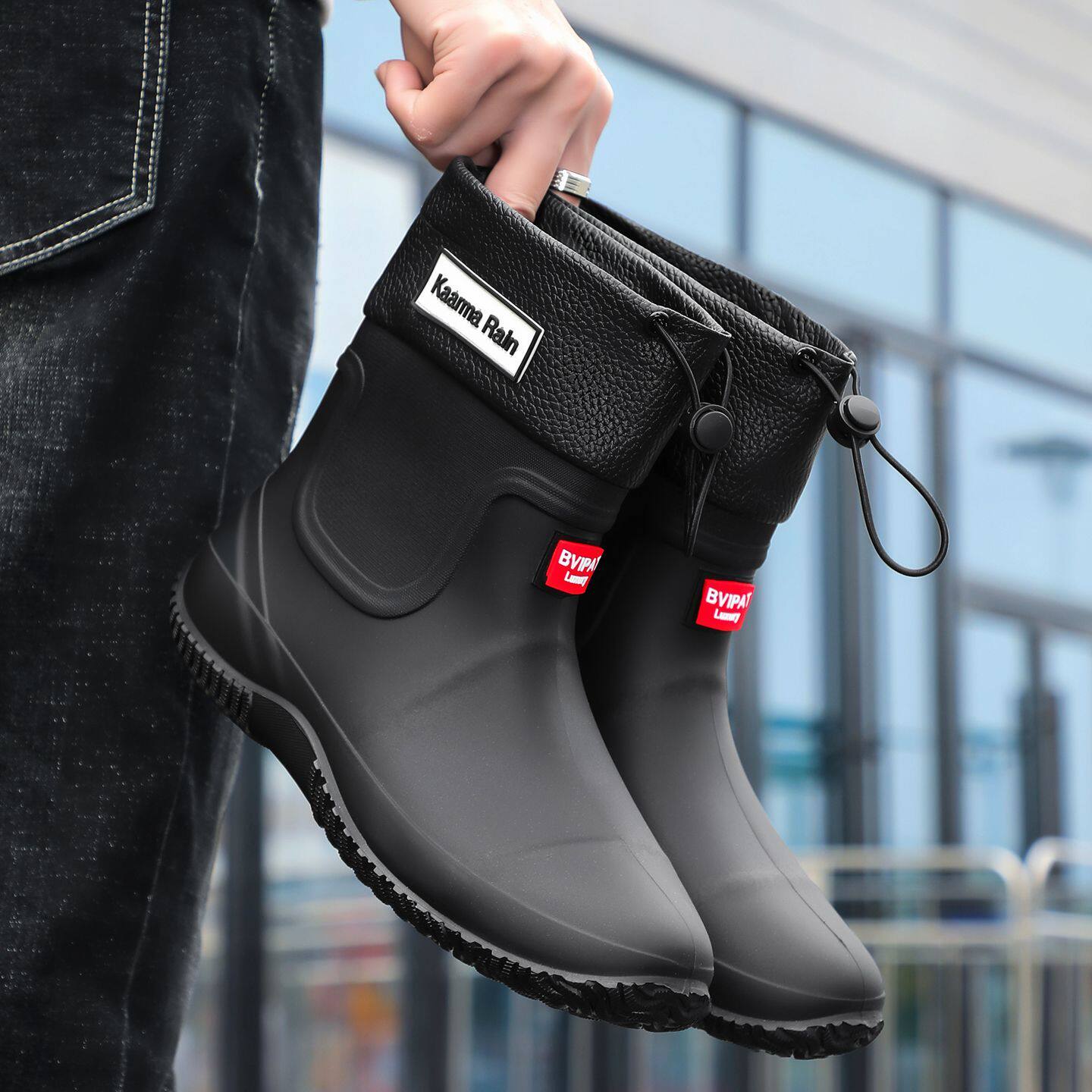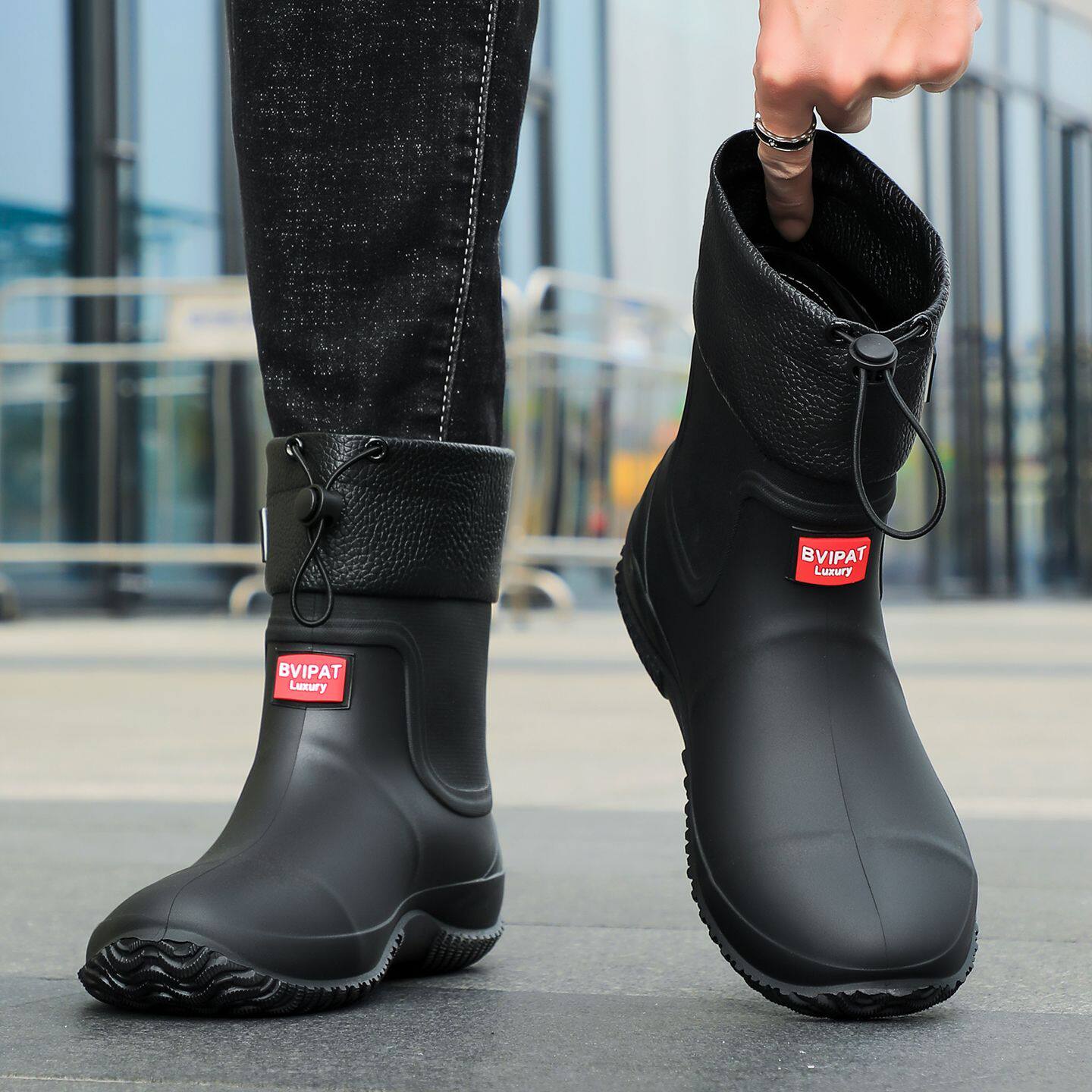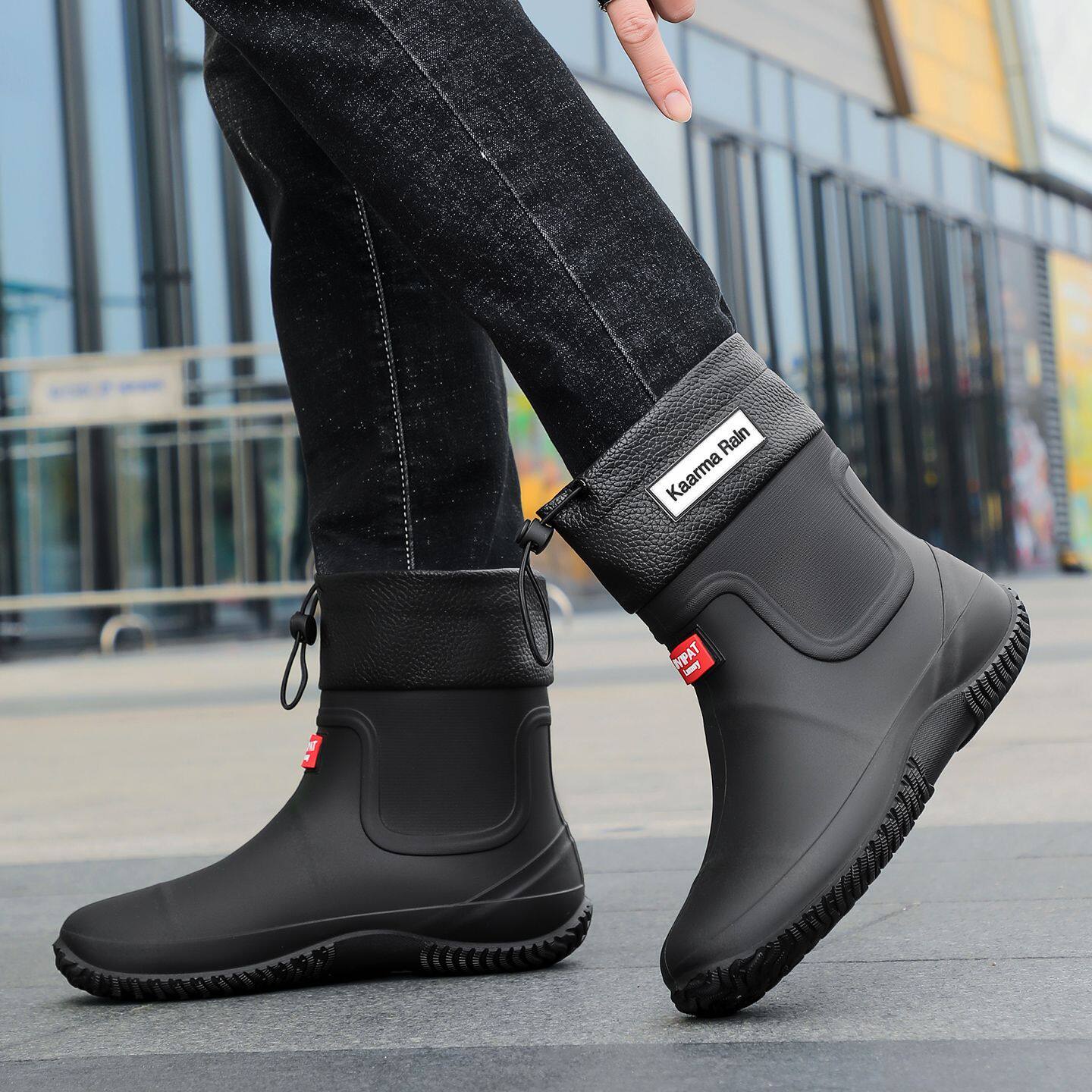 加厚水鞋水靴男士雨鞋女士短筒束口雨靴防滑防水加绒保暖厨房胶鞋
