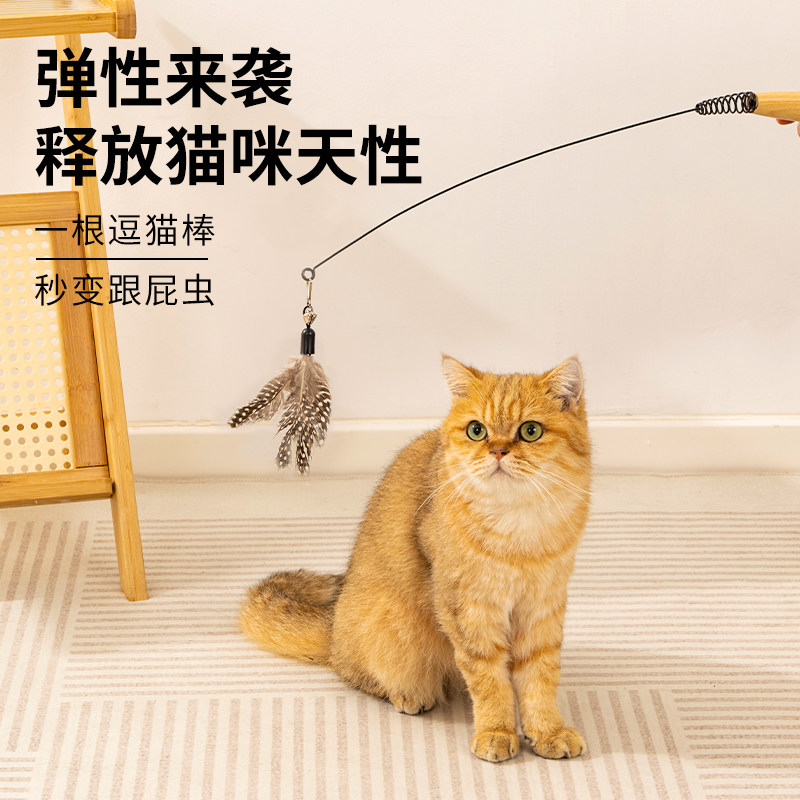 CFA赛级逗猫棒猫咪玩具长杆羽毛替换头猫玩具用品自嗨解闷铃铛