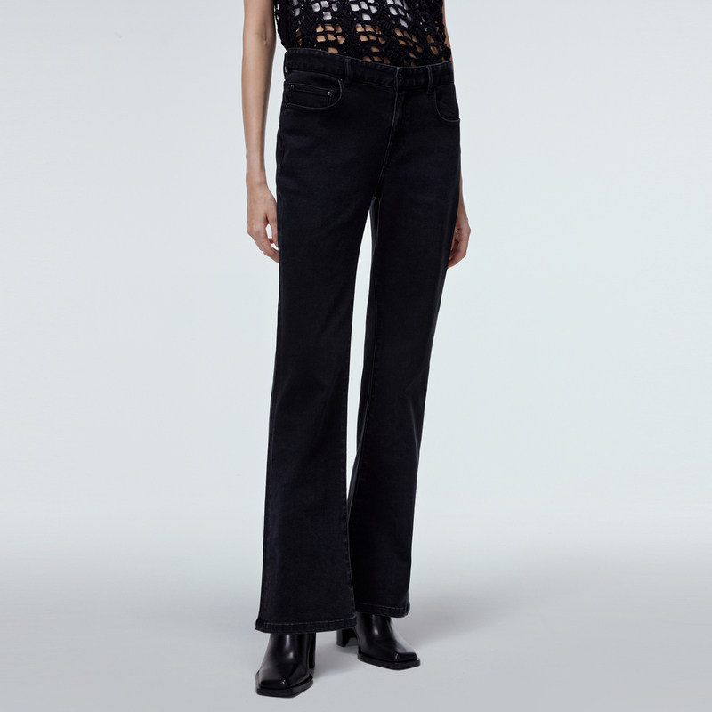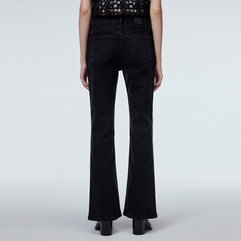 JNBY/江南布衣秋牛仔裤微喇裤子女修身低腰水洗牛仔黑色5NBE1571H
