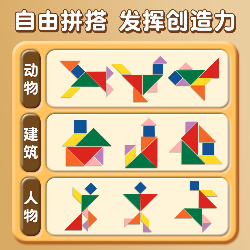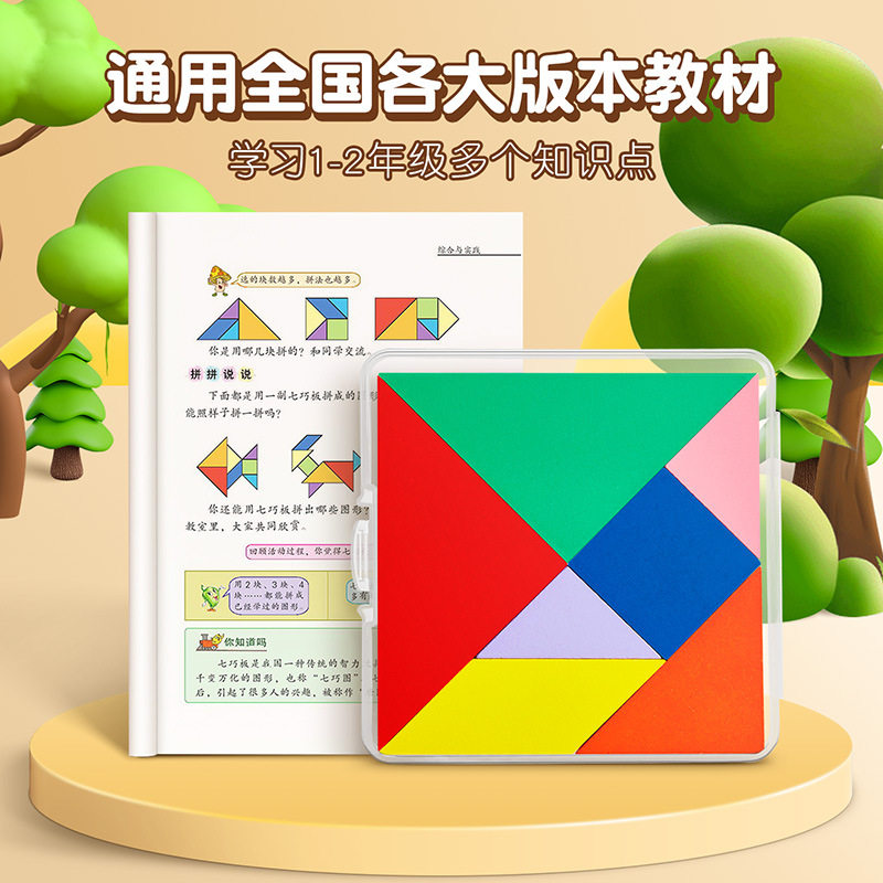 木质儿童七巧板小学生一年级下册数学教具二年级智力拼图益智