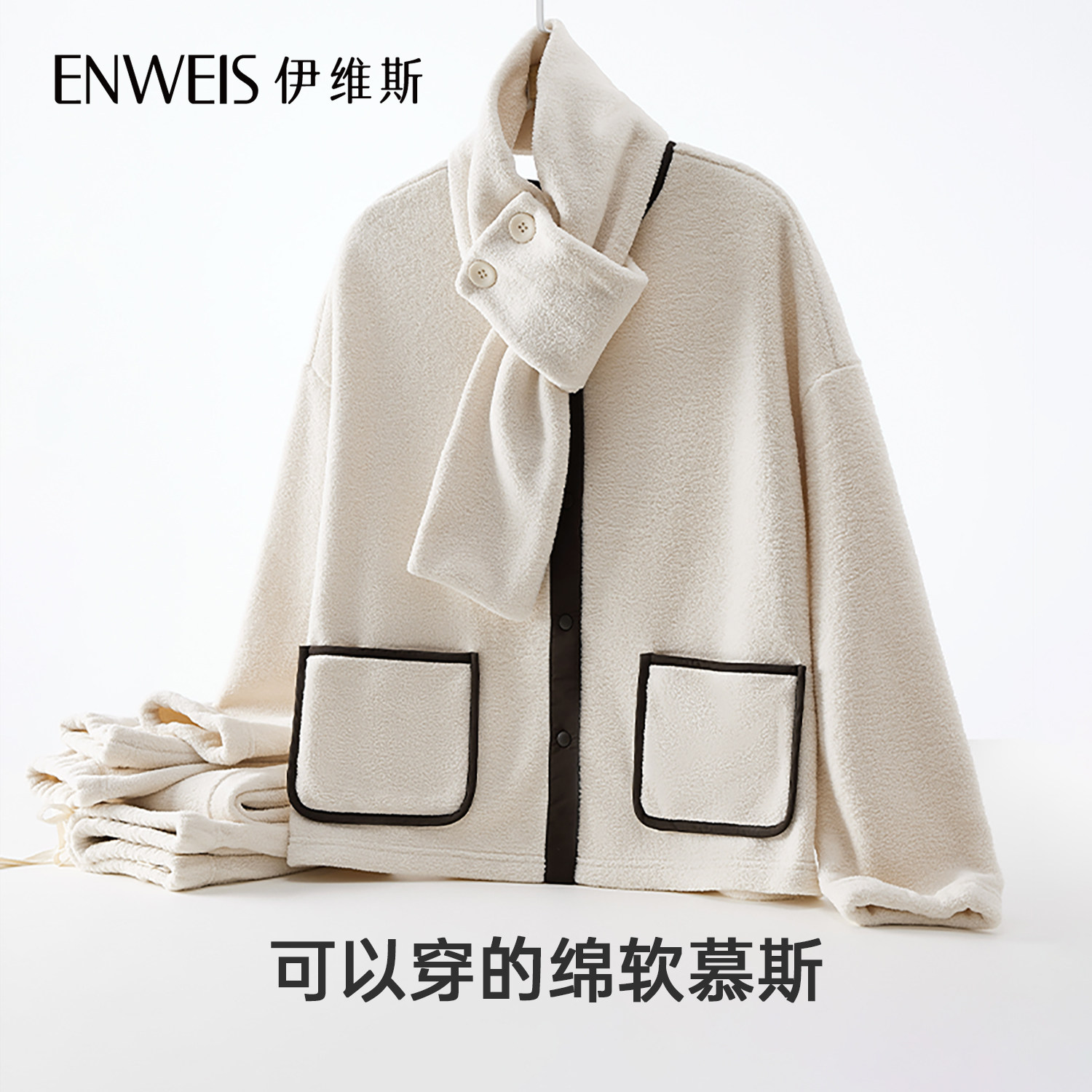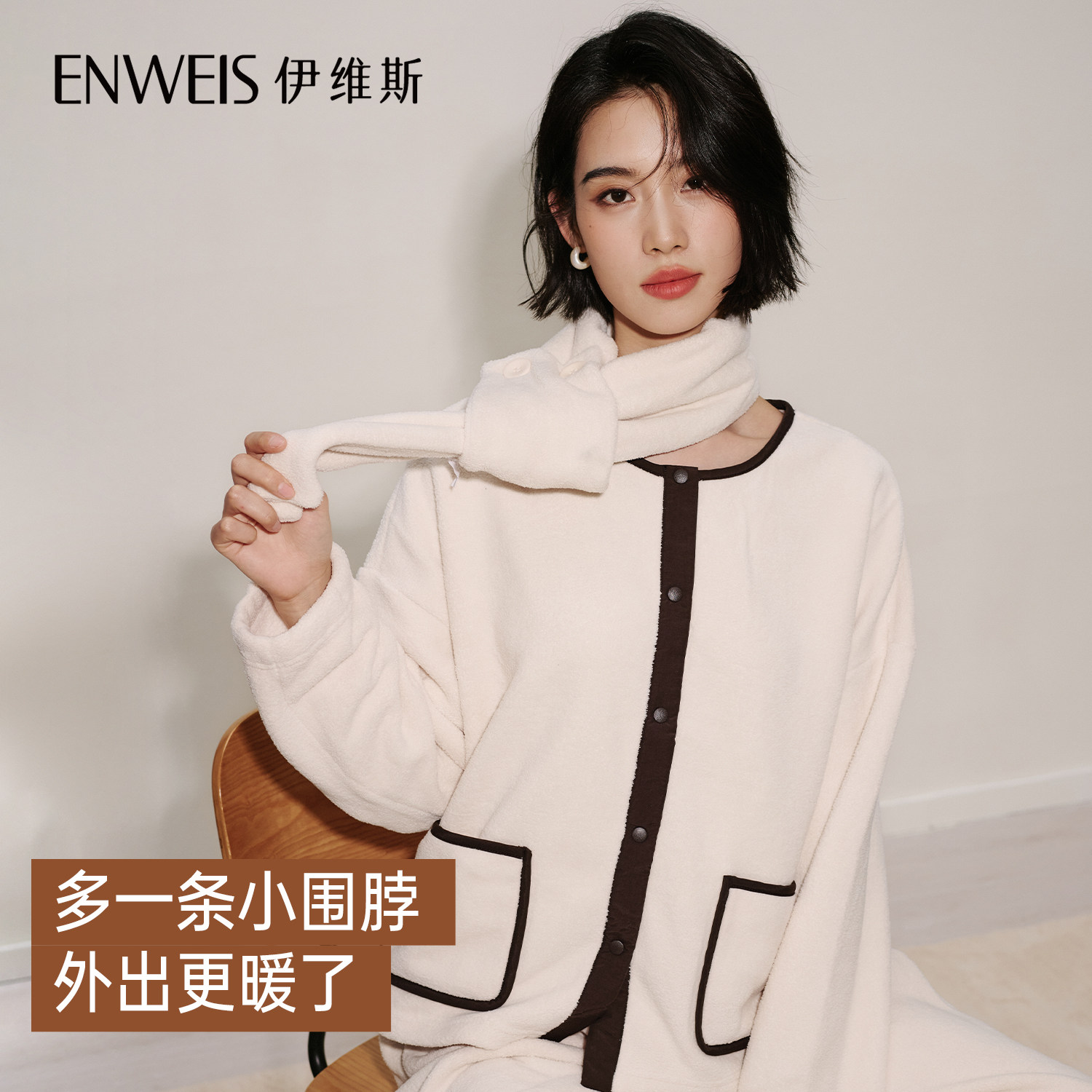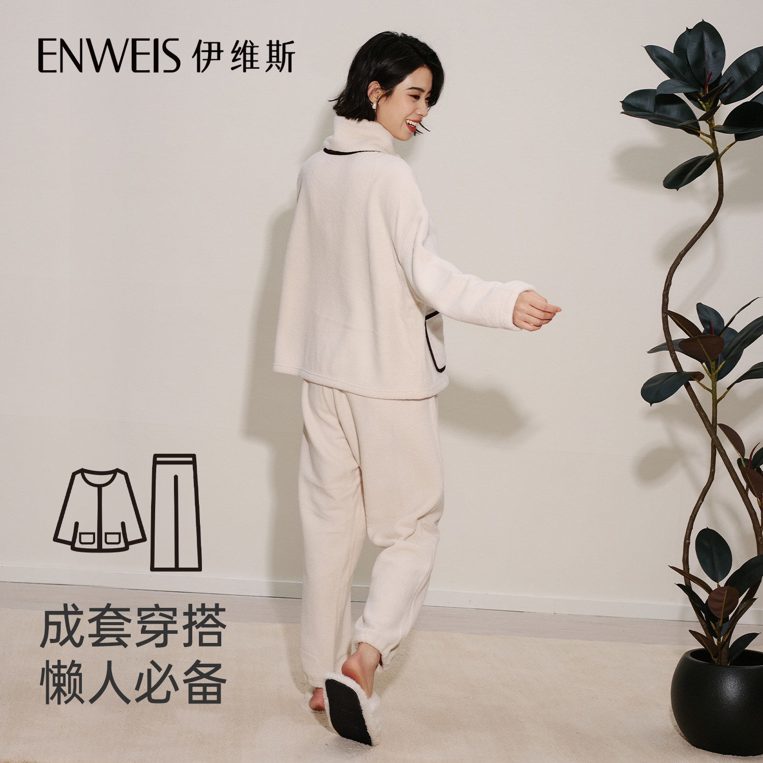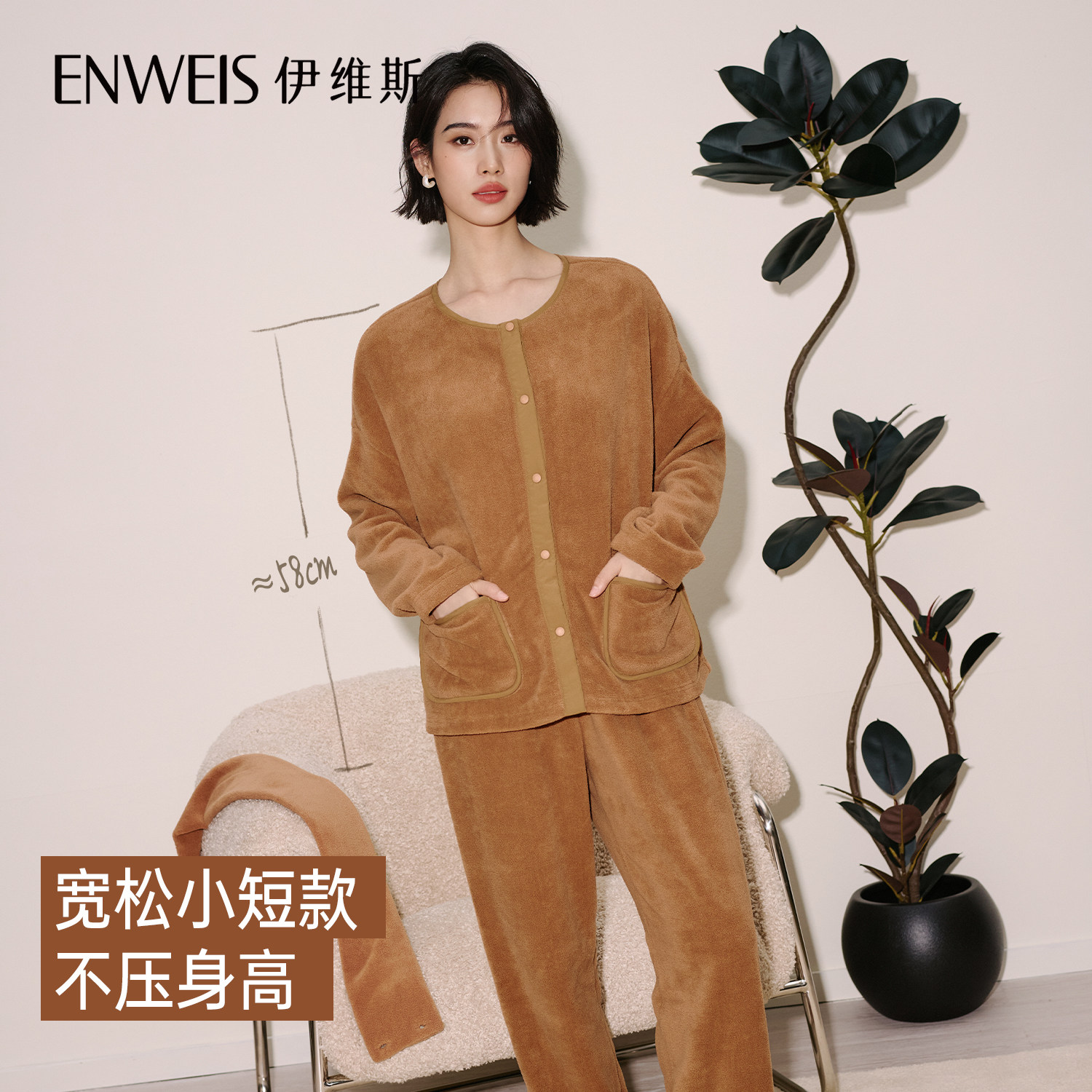 【慕斯绒】伊维斯睡衣女宽松圆领长袖加厚加绒可外穿家居服套装