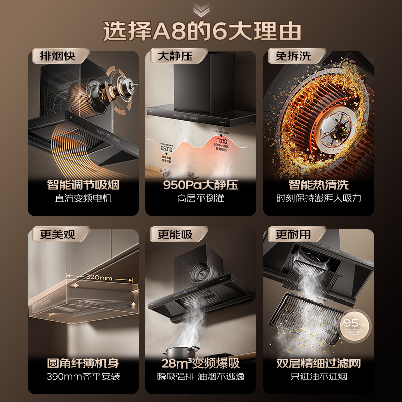 AI自主变频 950Pa强静压 挥手智控 自动清洗