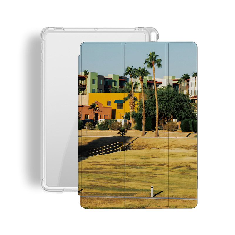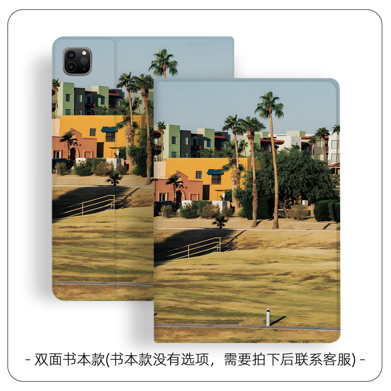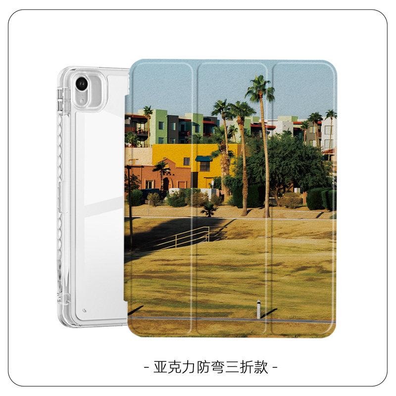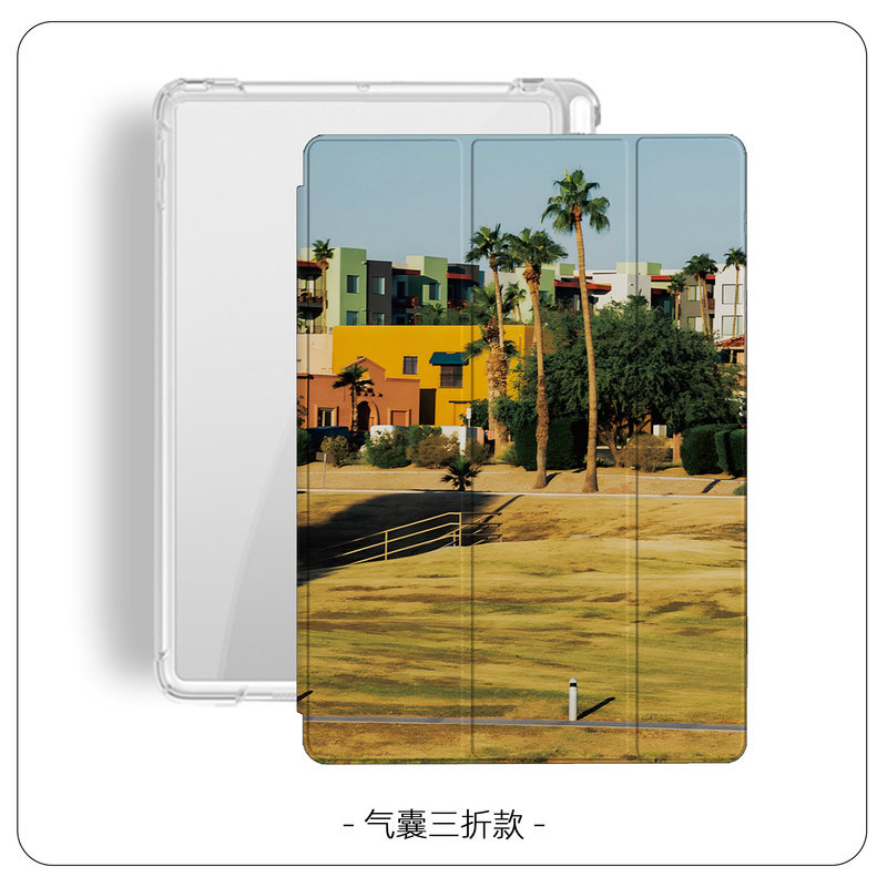 原创欧美小众椰树风景复古潮个性适用于苹果2024款iPadPro12.9/11三折保护壳air6/air5/mini6防摔气囊平板壳