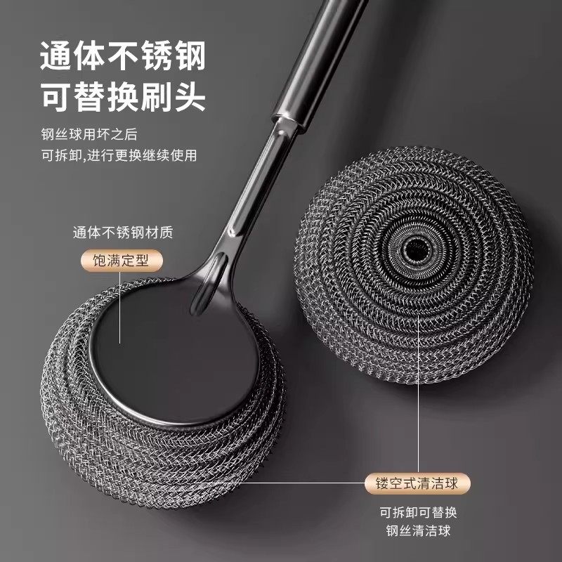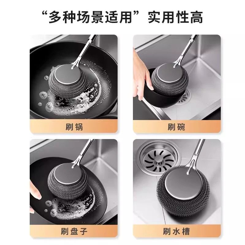 带柄钢丝球刷子长杆洗锅不生锈清洁厨房不伤手洗碗瓶罐不掉渣灶台