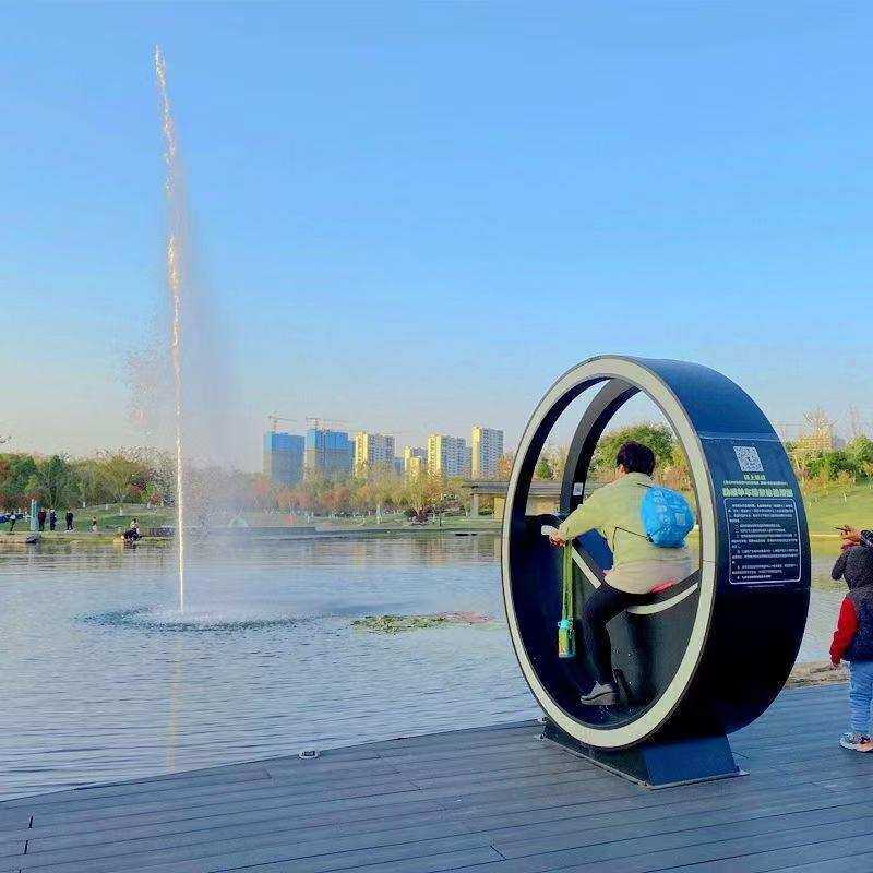 ?网红户外发电单车喷泉脚踏动感发光广场景区无动力游乐划船机设