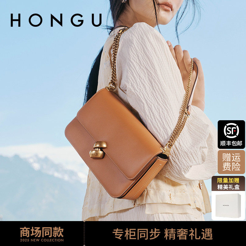 红谷包包2025新款牛皮链条单肩腋下包通勤高级感斜挎小方包女士包
