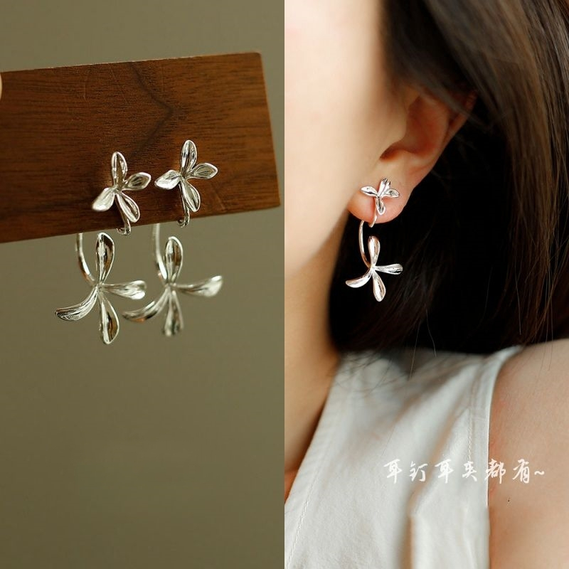 设计感立体栀子花喇叭花耳夹气质冷淡风后挂式高级感无耳洞耳饰女