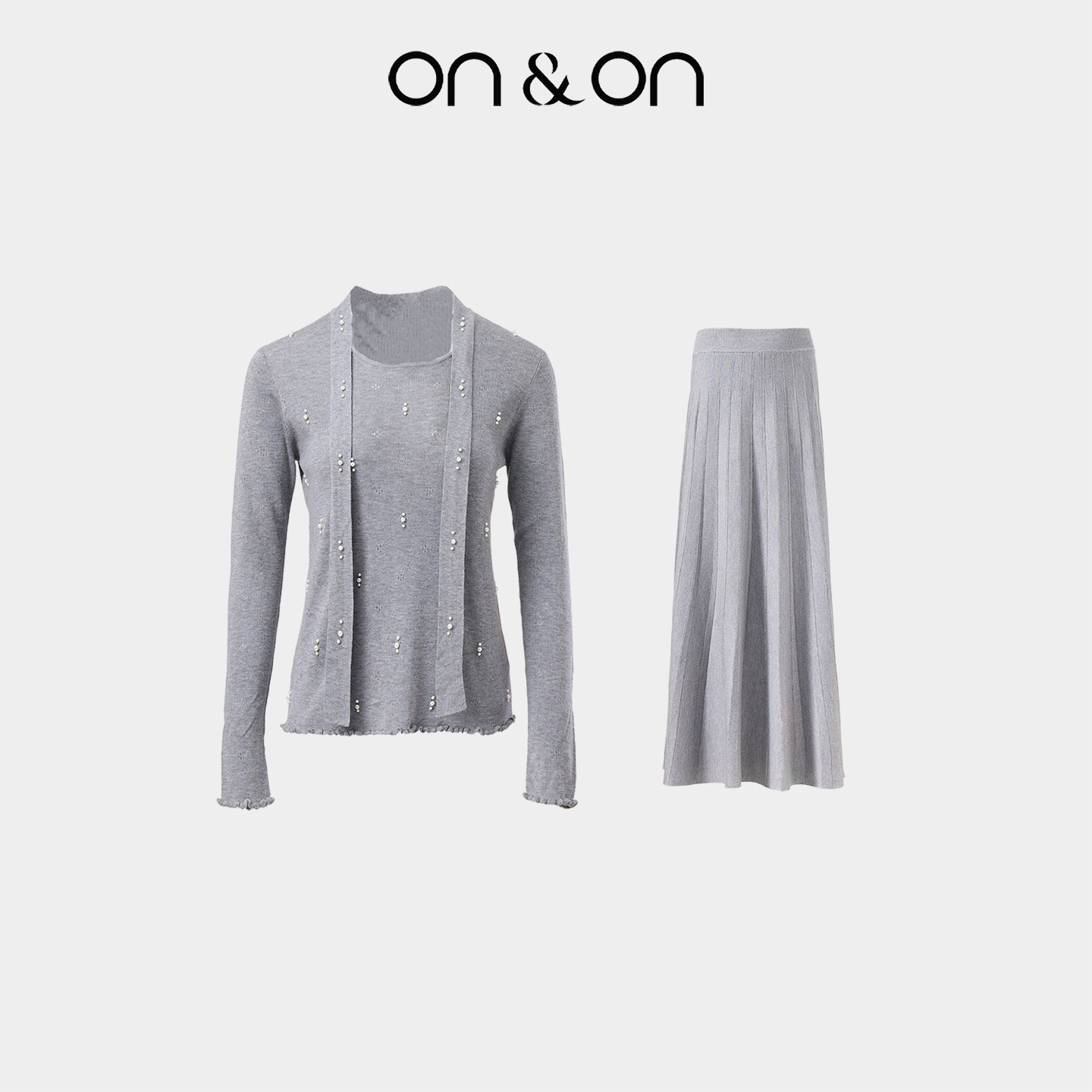 ON&ON/安乃安2025冬季新款韩系重工钉珠圆领系带针织衫+半裙套装