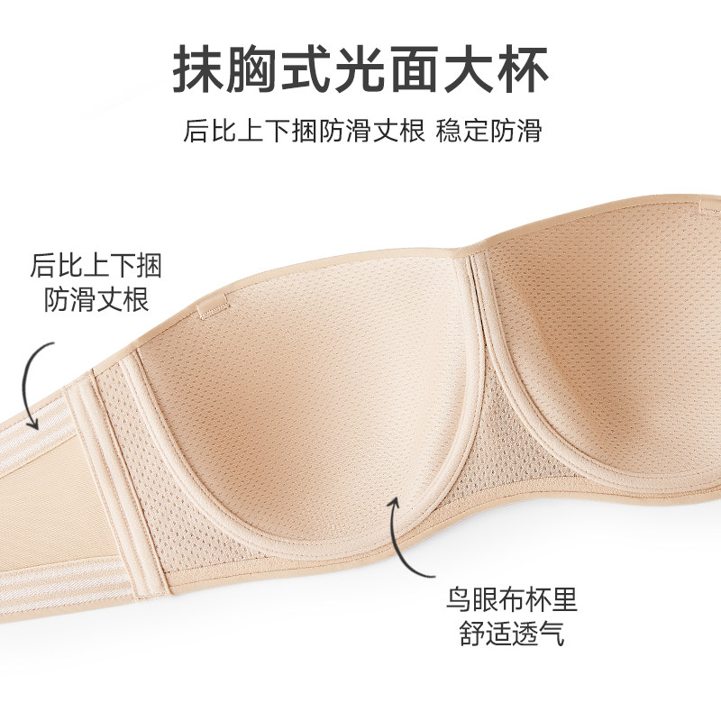 菇娘家稳稳杯无肩带内衣女大胸美背抹胸裹胸隐形无痕聚拢防滑文胸