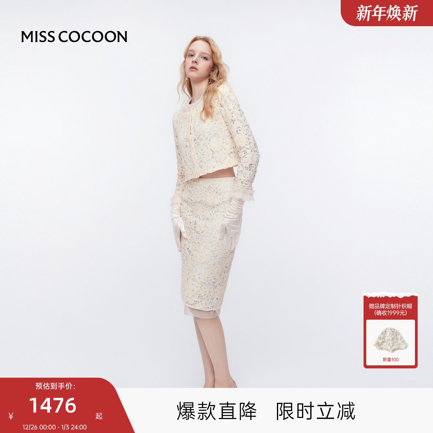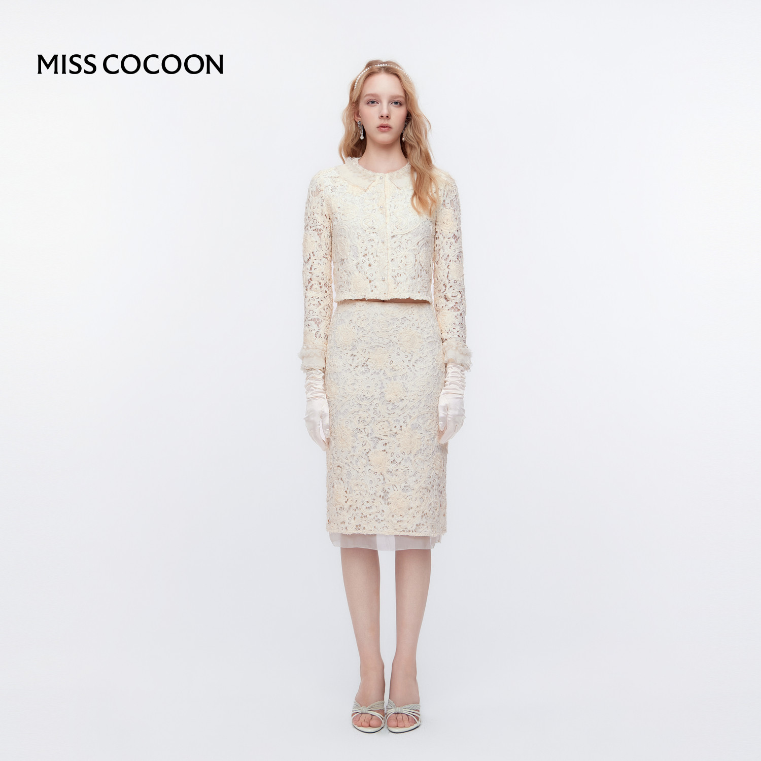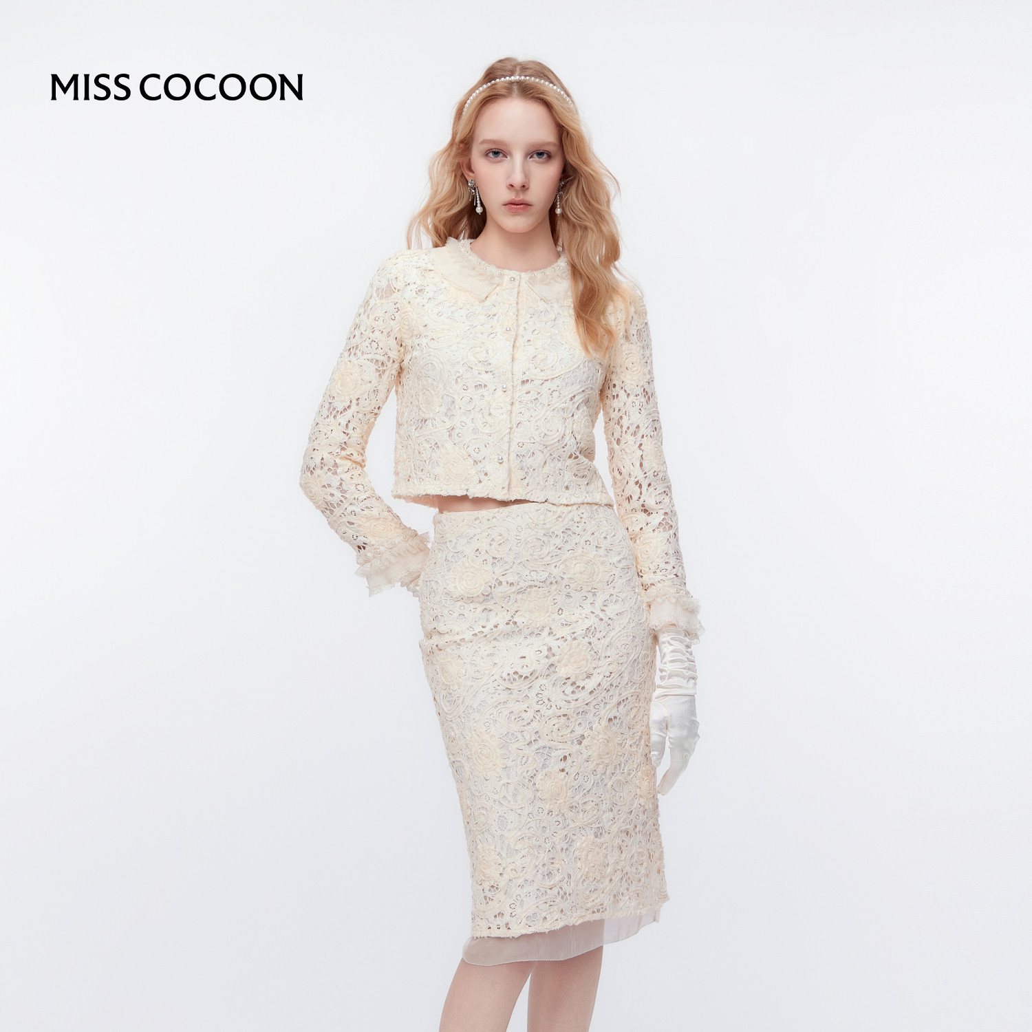 MISSCOCOON可可尼小香风短外套女2025秋季新款白色镂空蕾丝套装裙