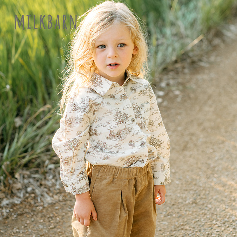 Milkbarn秋季儿童长袖衬衫纯棉男童衬衣外套女童休闲上衣宝宝童装