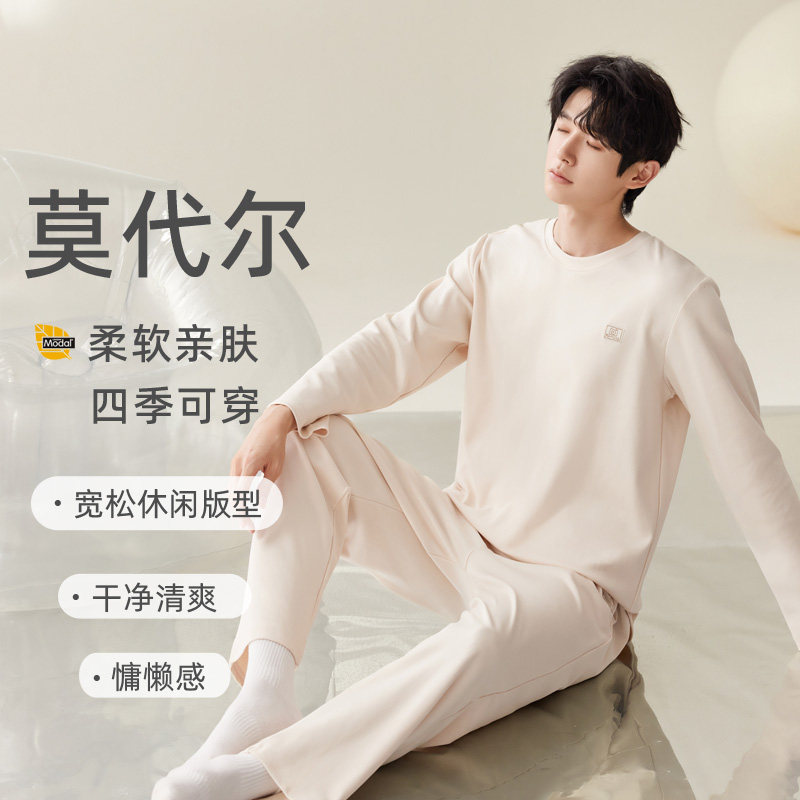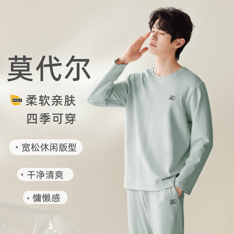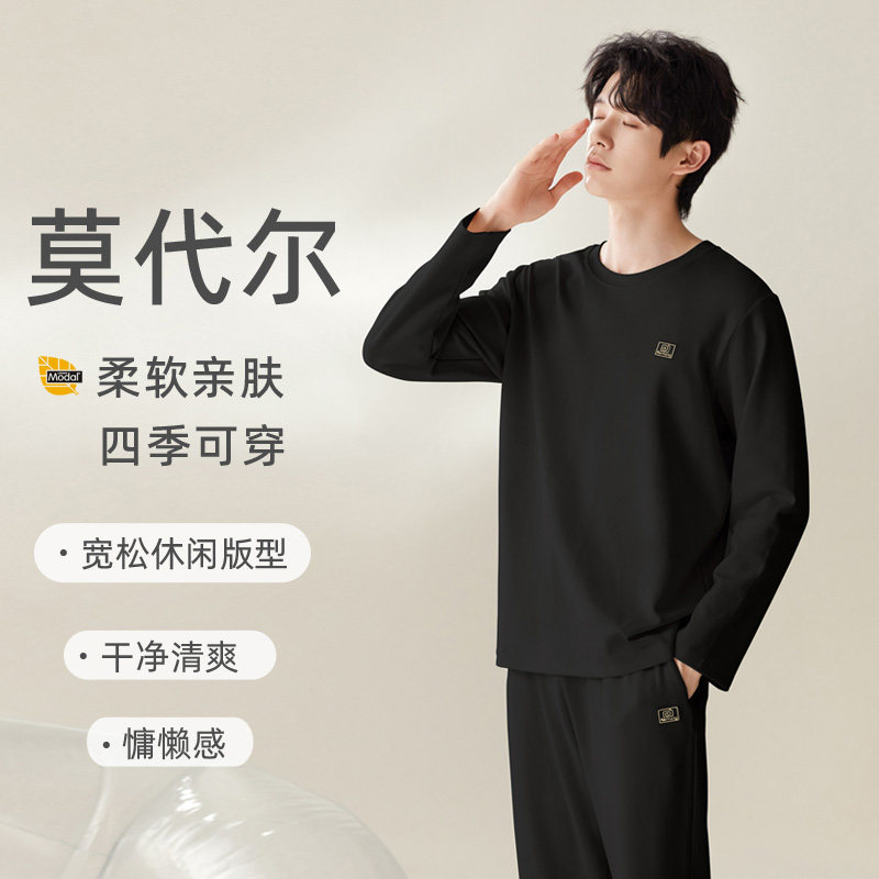 帕兰朵秋款男士睡衣男款春秋季长袖莫代尔棉绸家居服大码2024新款