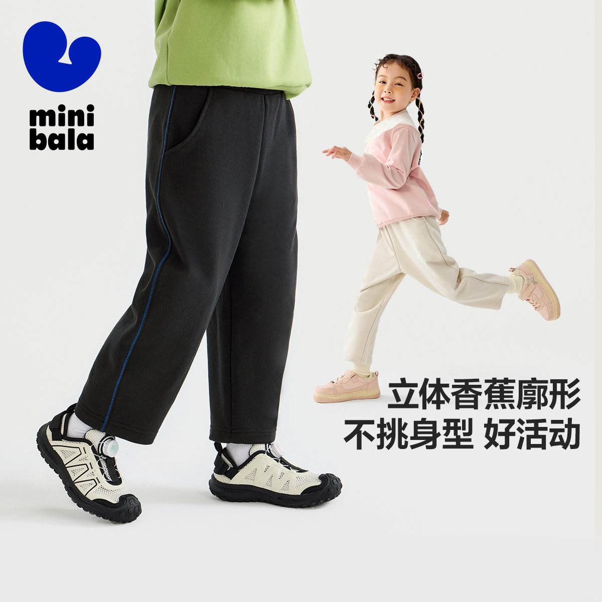 迷你巴拉巴拉男女童裤子春新品儿童时尚香蕉裤卫裤弯刀裤