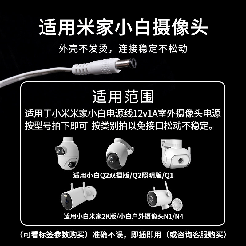 适配小米米家小白电源线12v1A室外摄像头电源户外摄像机创米N1充电器5米线适配器