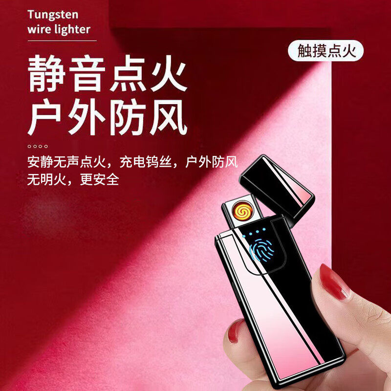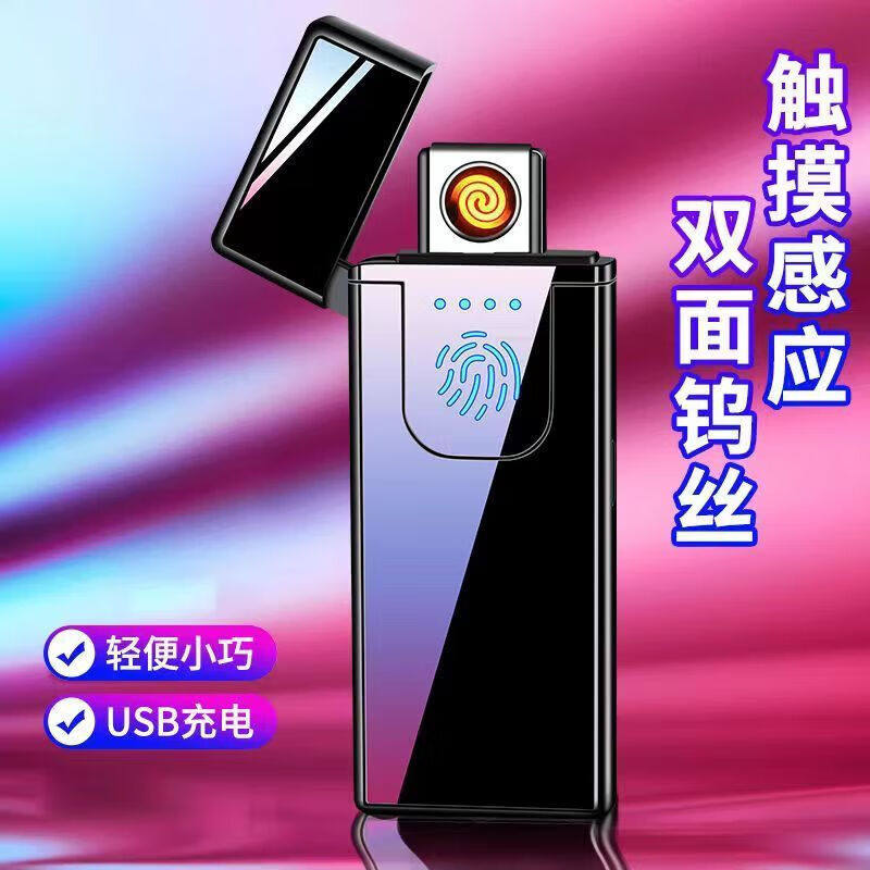 【双面钨丝】充电打火机男士防风高档个性无火无声指纹感应点烟器