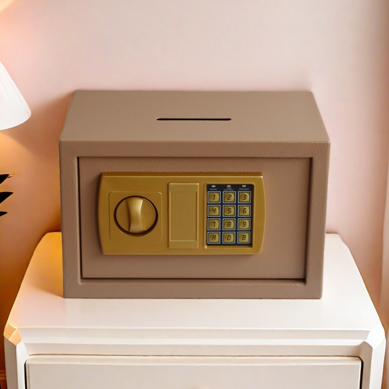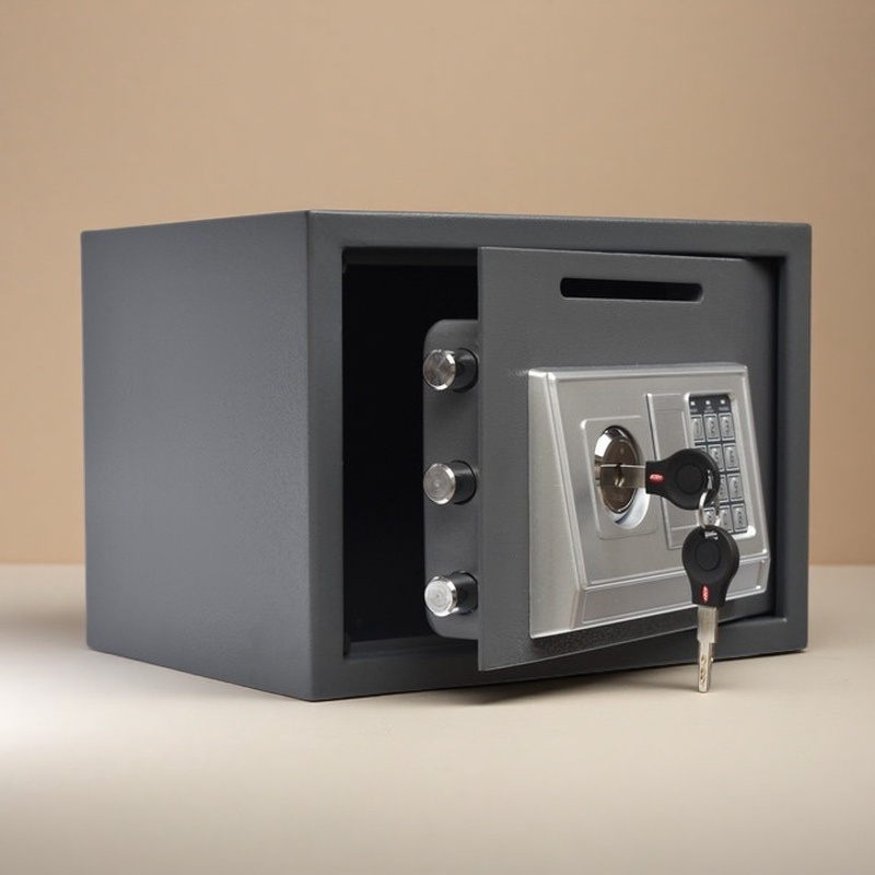 双锁投币式小型保险箱旋钮投币式保险柜超市收银箱存钱罐保管箱