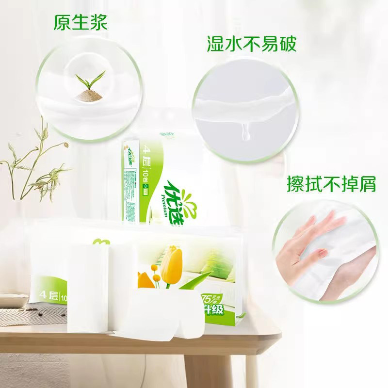 维达纸巾无芯卷纸超韧4层10卷家用卫生纸实芯卷筒纸厕纸手纸提装