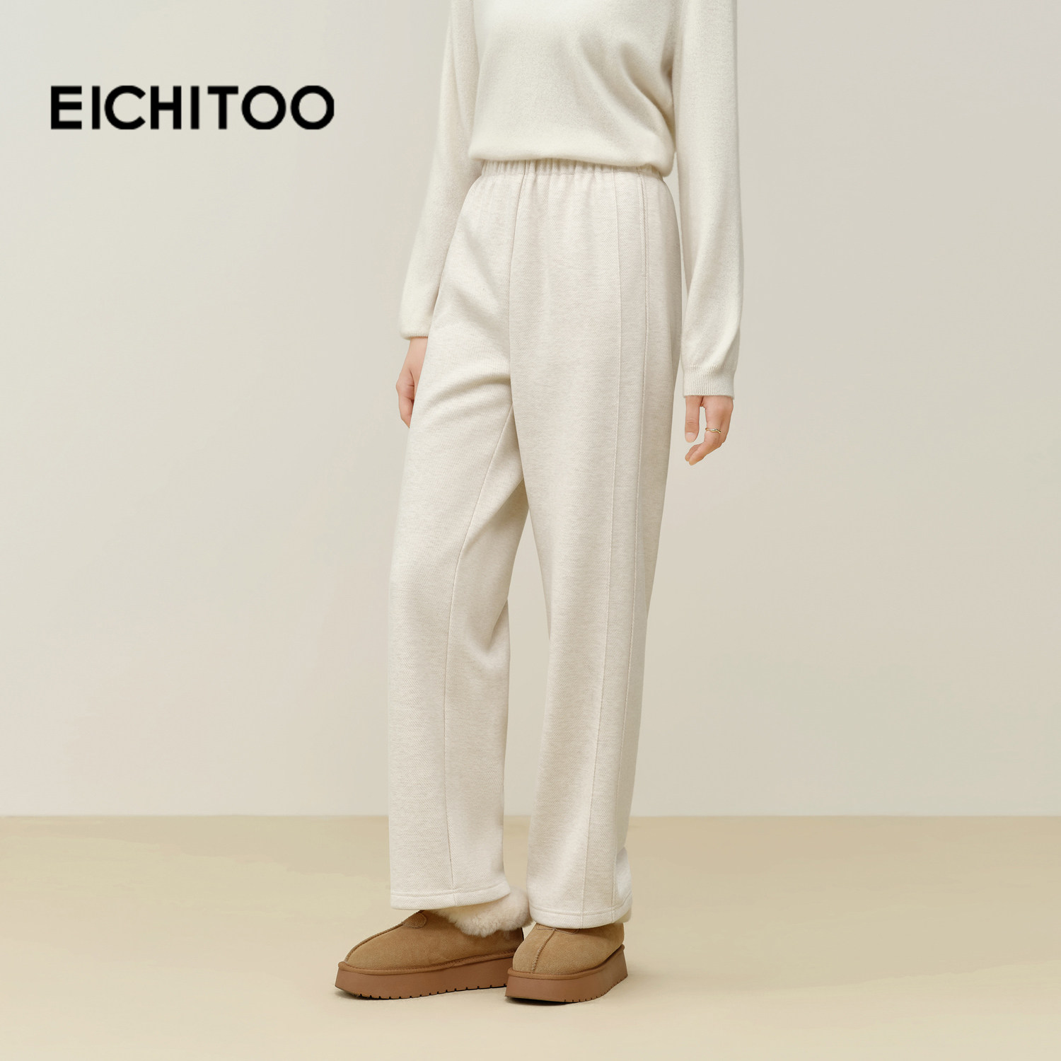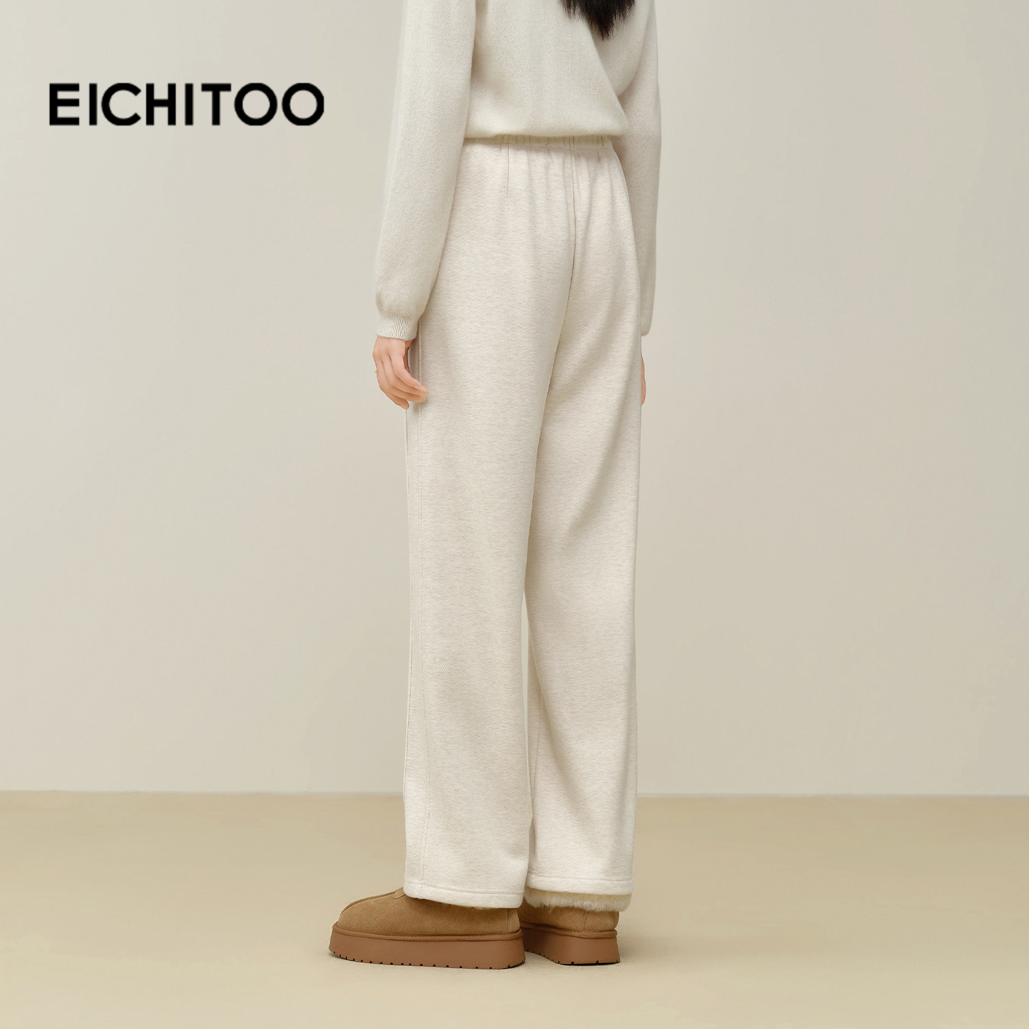 杨幂同款SIINSIIN2025新款白色加绒直筒裤女冬季厚显瘦运动小个子