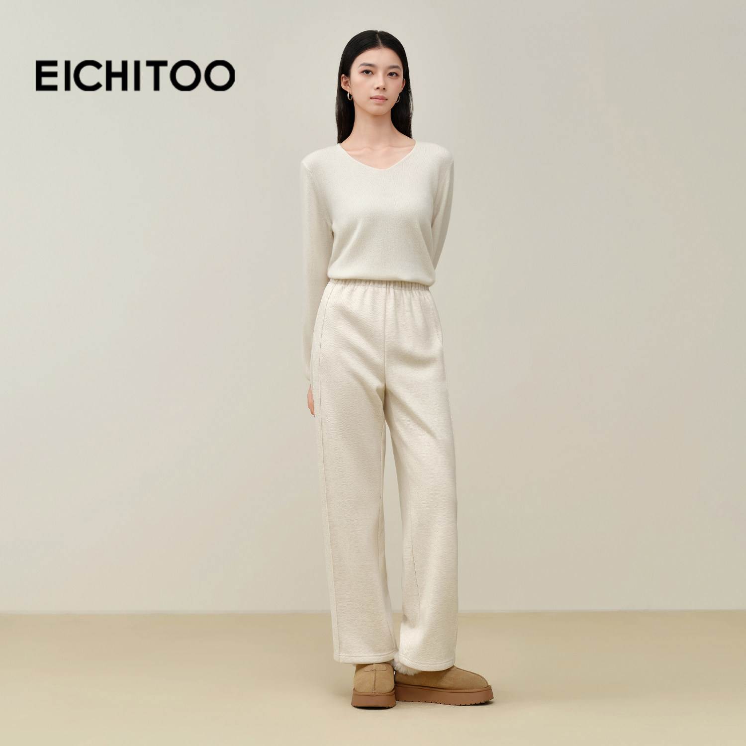 爱居兔桑蚕丝羊毛高品质休闲裤2025年冬季新款女御寒保暖直筒长裤