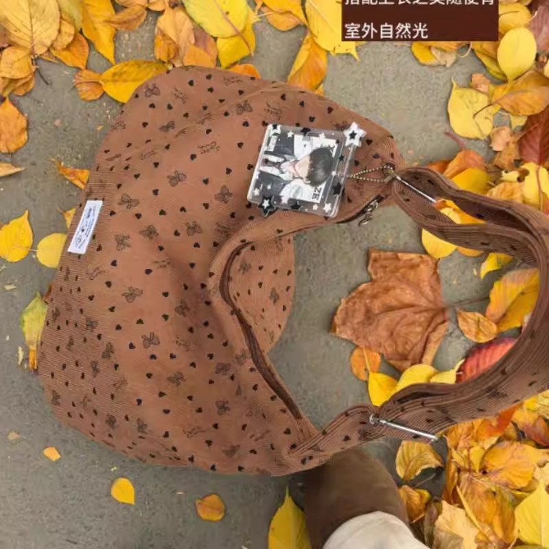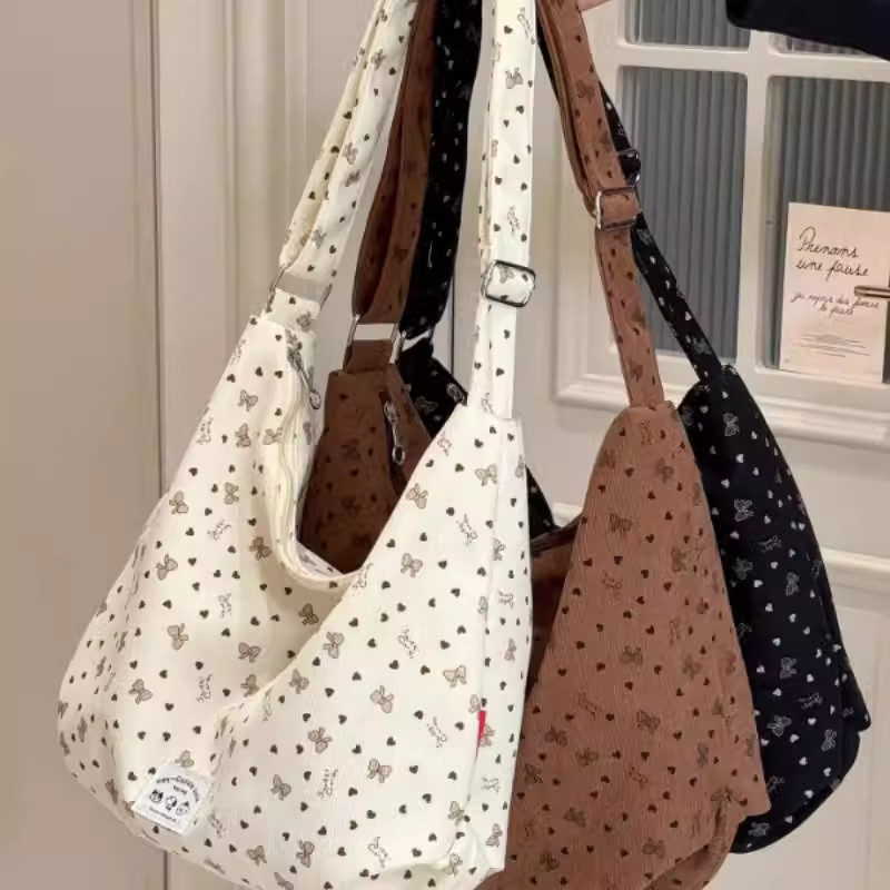 大容量灯芯绒饺子包新款韩系单肩包学生上课通勤斜挎包包女手提