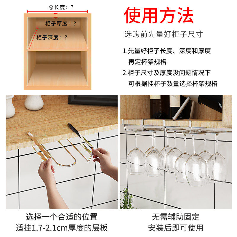 304不锈钢红酒杯架家用悬挂香槟酒柜挂架倒挂高脚杯子橱柜置物架