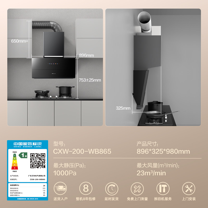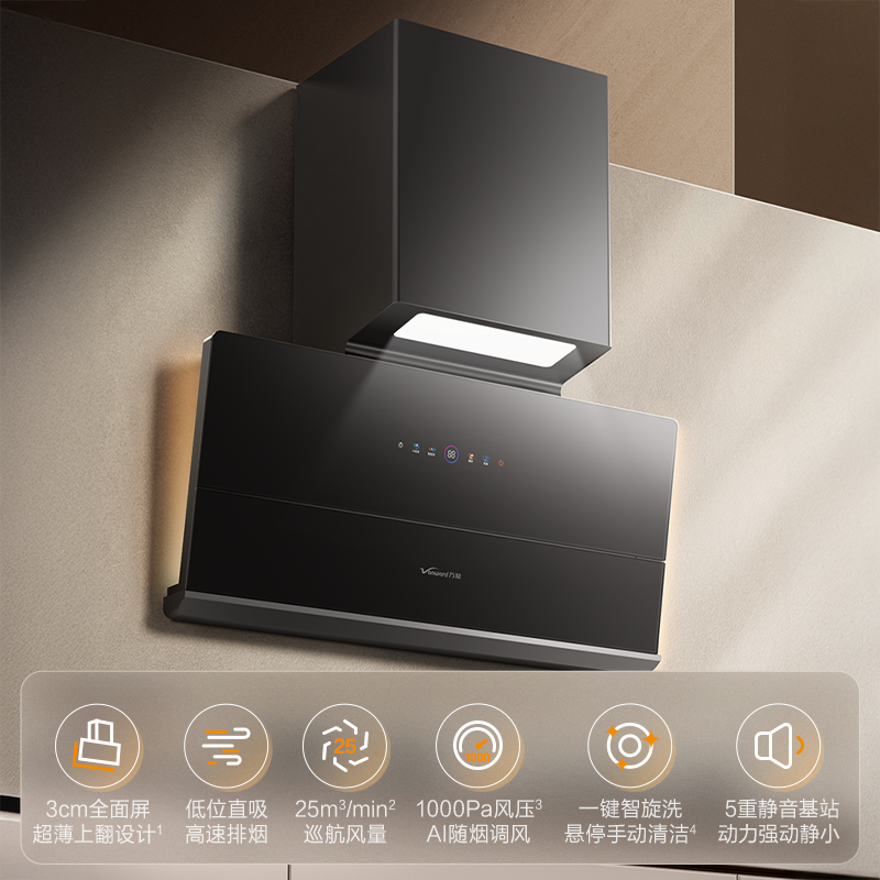 [政府补贴]万和小双翼超薄油烟机家用厨房大吸力变频抽风机WB865