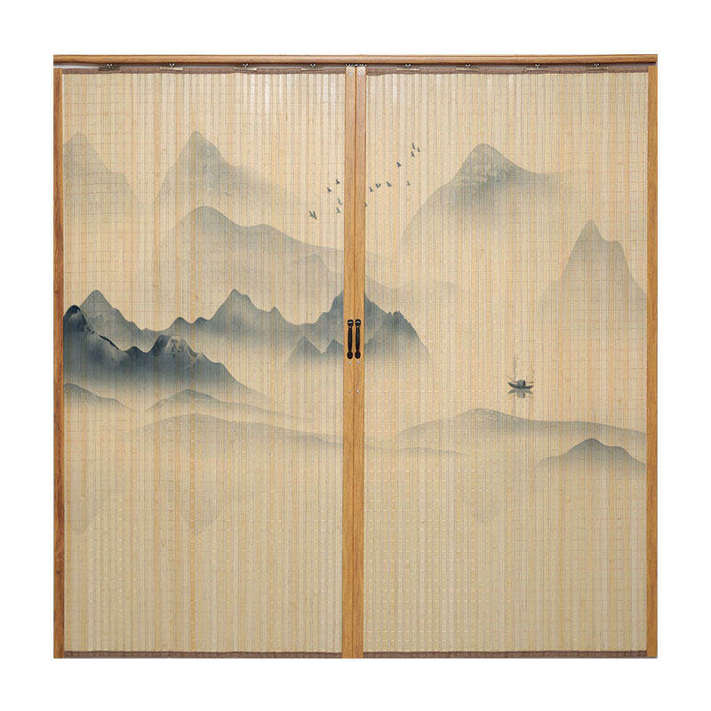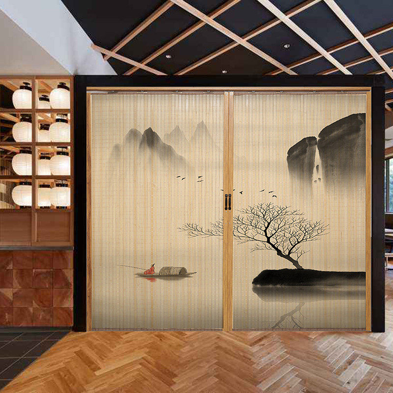 竹帘推拉门隔断 家用可折叠新中式风格遮阳门帘