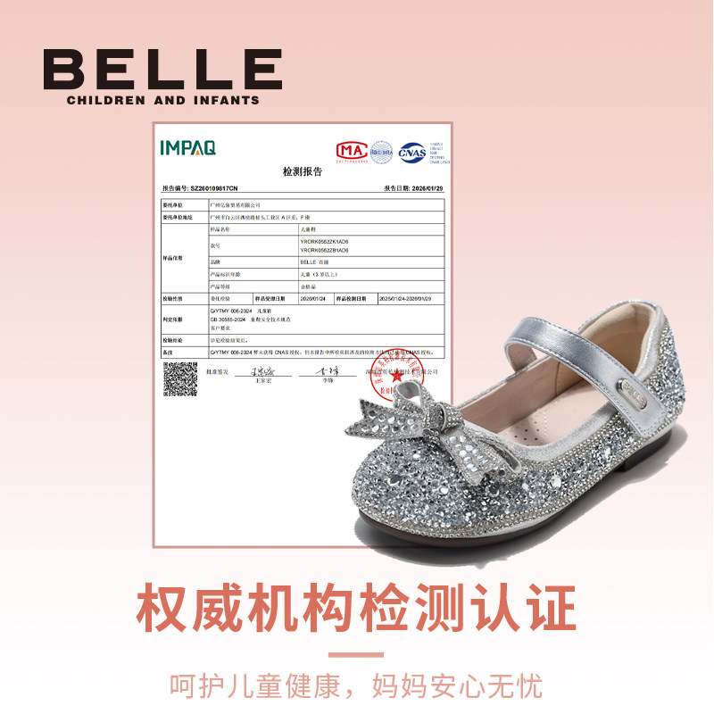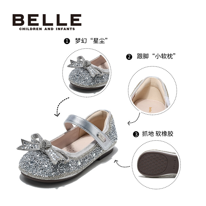百丽童鞋女童公主鞋2026春季新款小女孩水晶鞋儿童时尚单鞋宝宝鞋