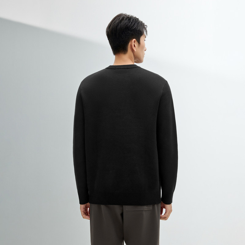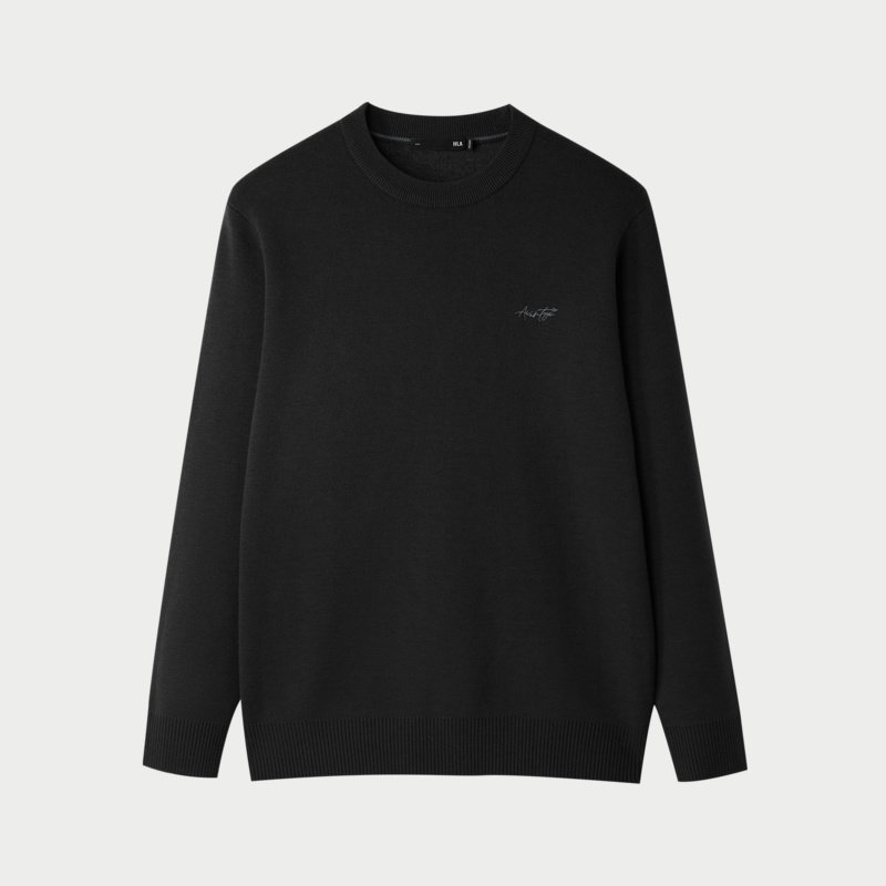 HLA/海澜之家轻商务休闲加绒加厚长袖针织衫24冬新圆领黑色毛衣男