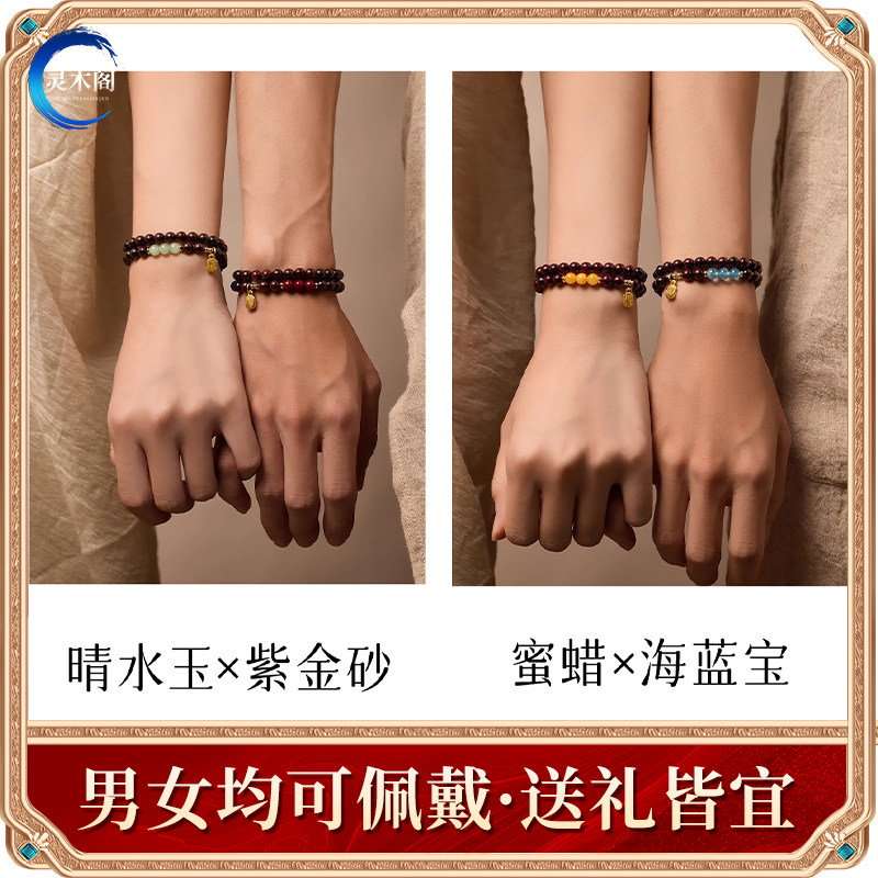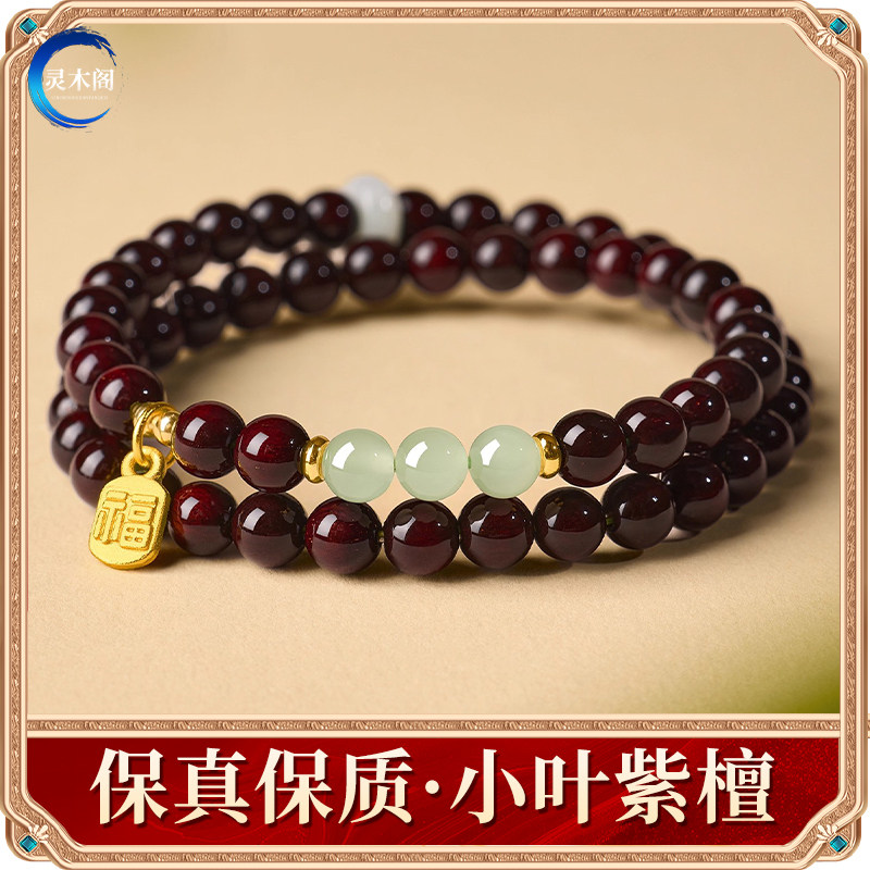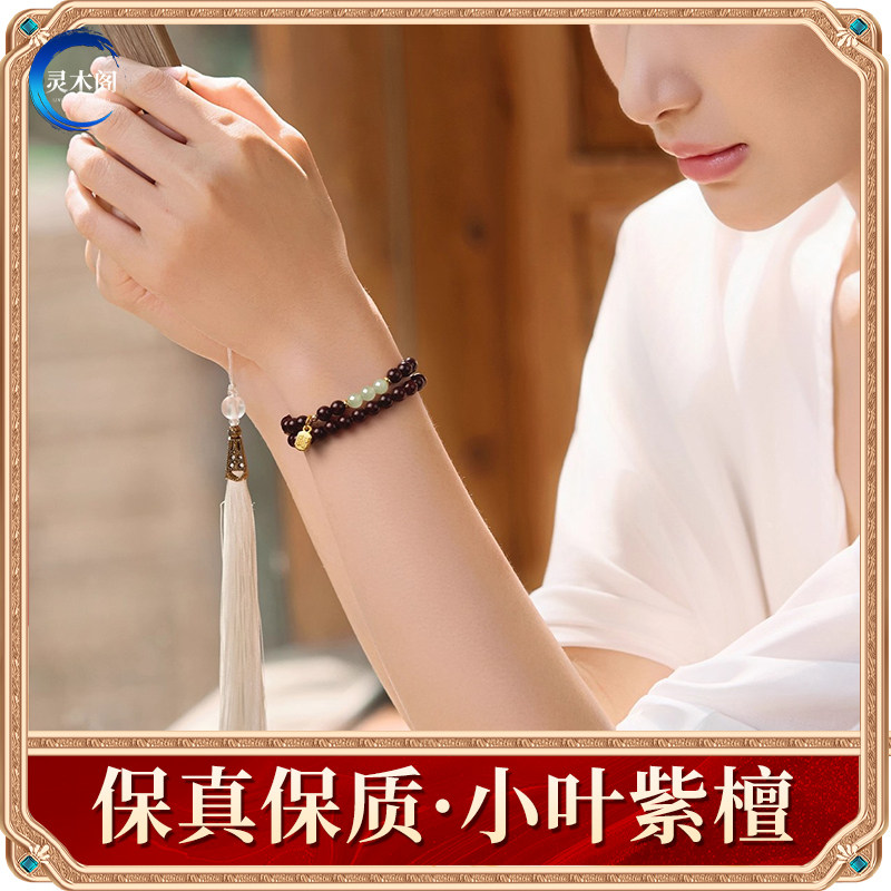 天然印度小叶紫檀手串女士檀香紫檀木质佛珠和田玉转运珠手链礼物