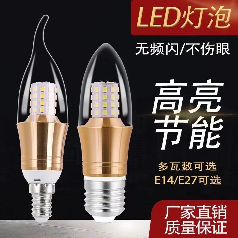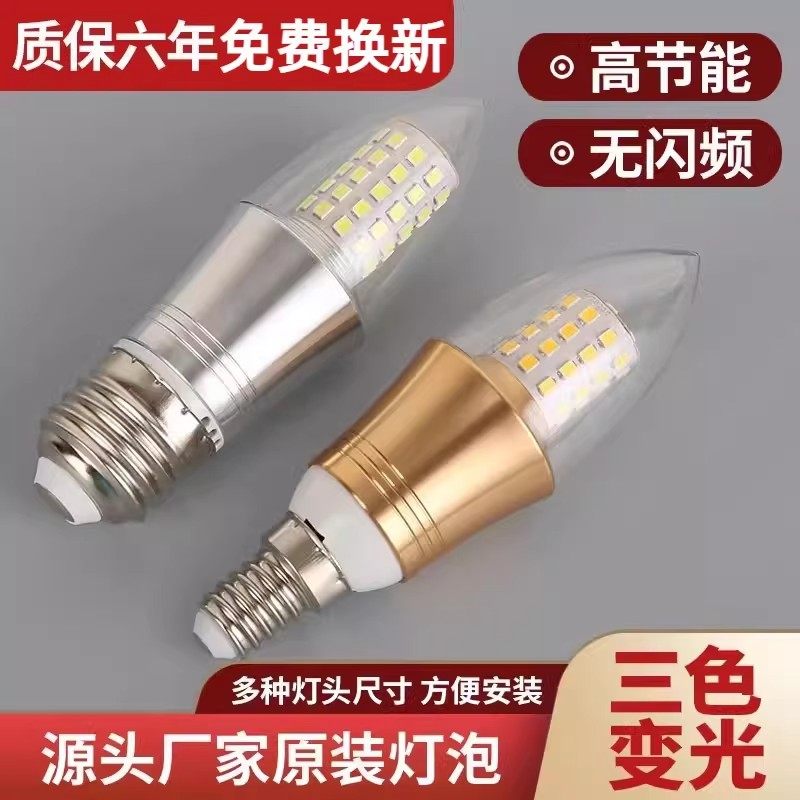 led灯泡e14小螺口e27家用节能灯超亮光源三色变光灯暖大螺口蜡烛