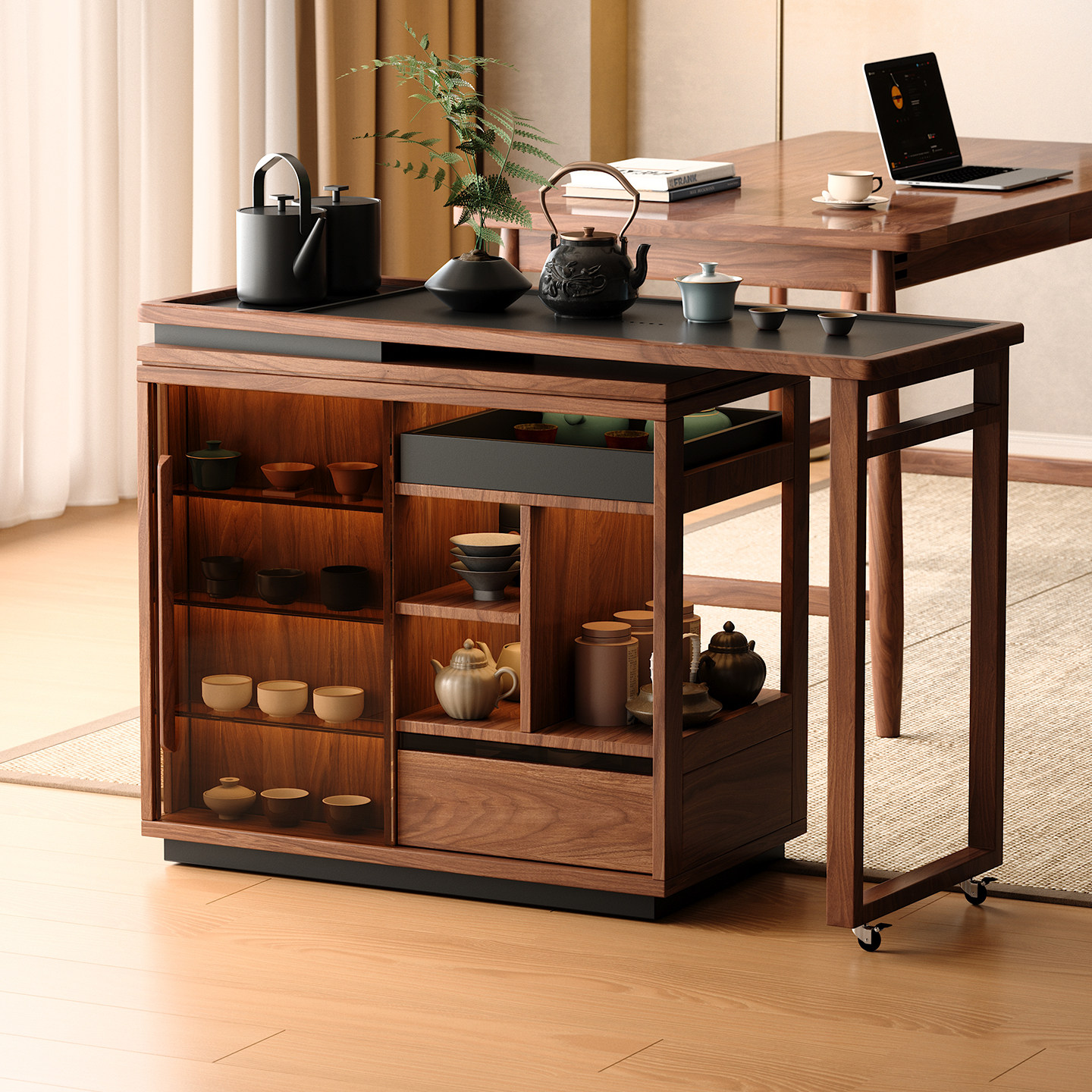木小咖云屿可移动实木边柜家用可移动茶桌茶几中古阳台茶水柜茶台