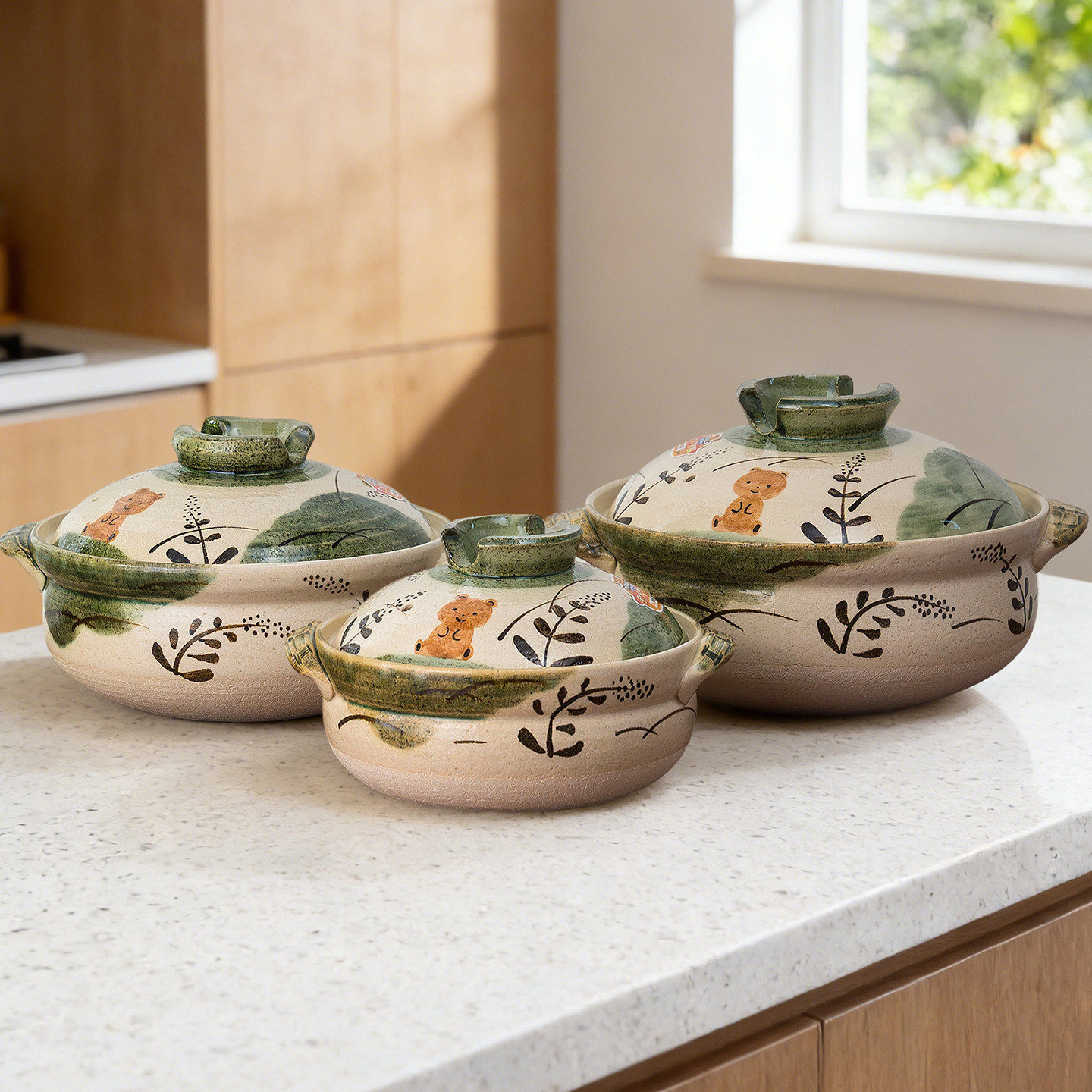 万古烧日式进口土锅芦绘熊砂锅家用大容量耐高温陶瓷煲汤锅沙锅