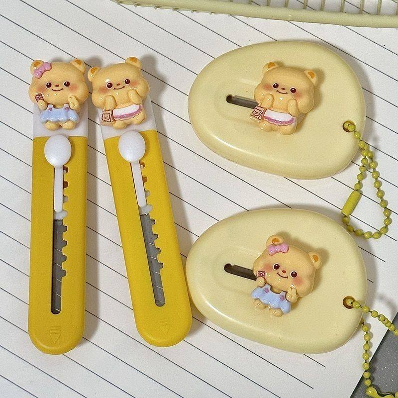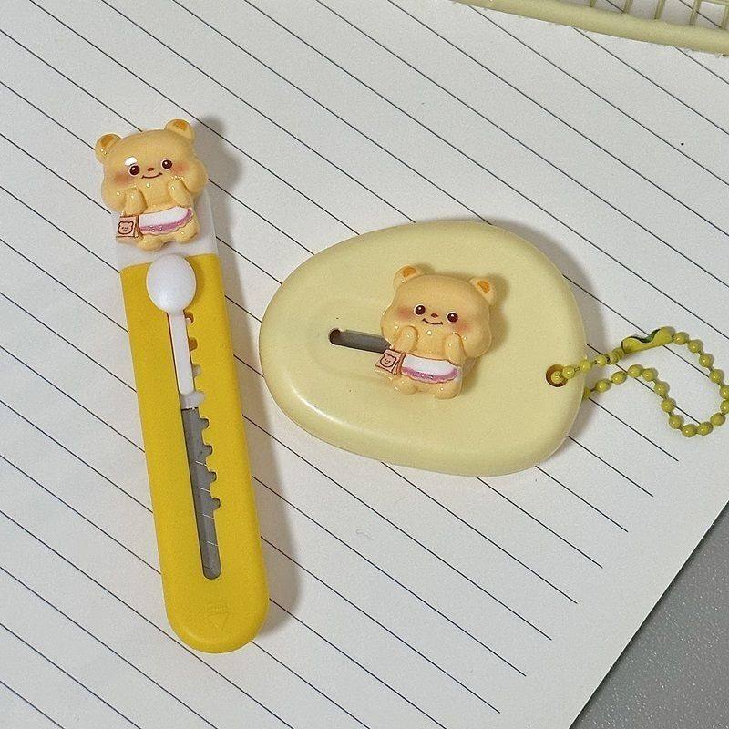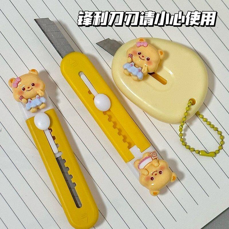 卡通黄油小熊美工刀高颜值小刀学生手帐裁纸刀便携式拆快递箱刀